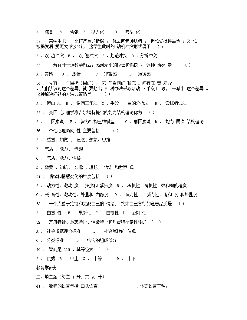 【文档预览】 无忧考网整理发布2016年河南专升本考试教育心理学真题及答案(Word版),前五页预览如下: