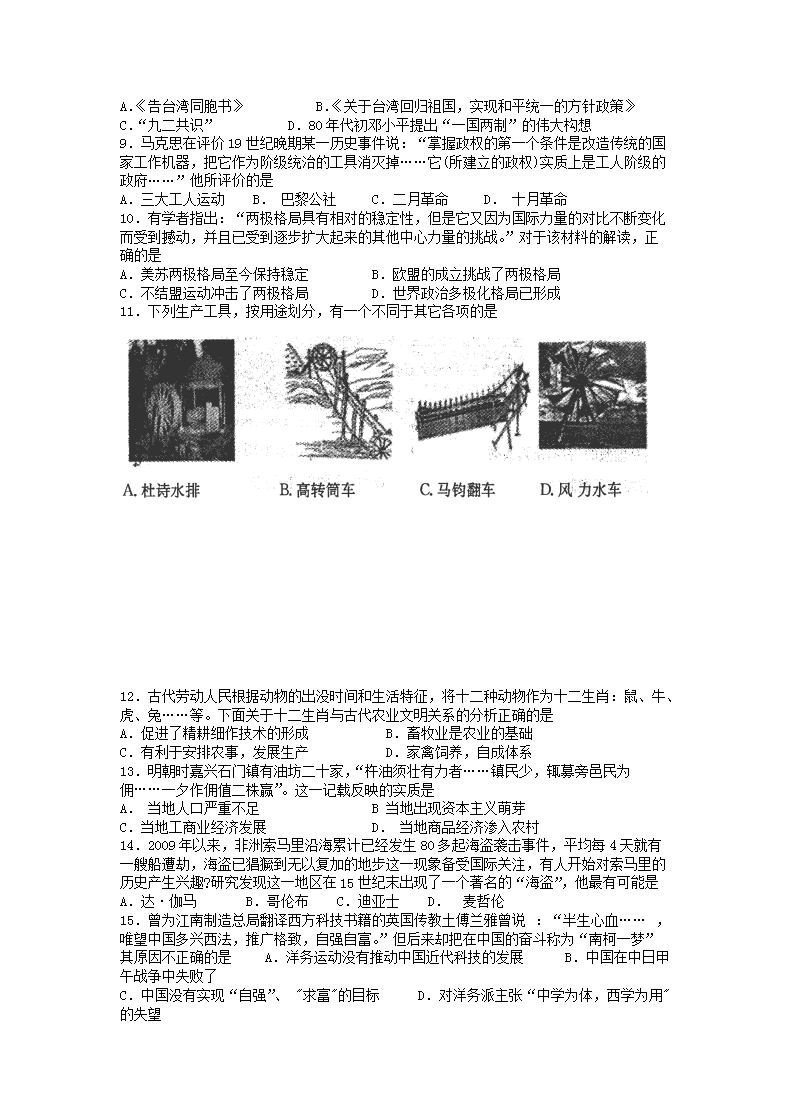 【文档预览】 无忧考网整理发布2014年江苏普通高中会考历史真题及答案(Word版),前五页预览如下: