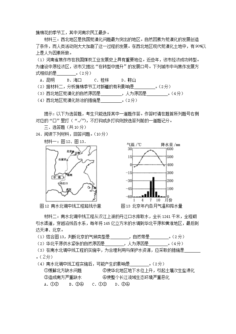 【文档名称】 2012年海南普通高中会考地理真题及答案(Word版).doc