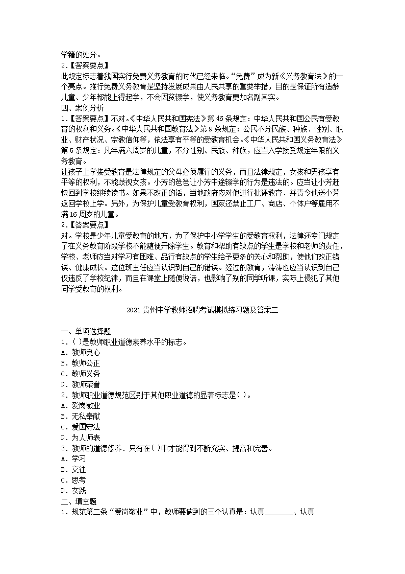 【文档名称】 2021贵州中学教师招聘考试模拟练习题及答案三套(Word版).doc