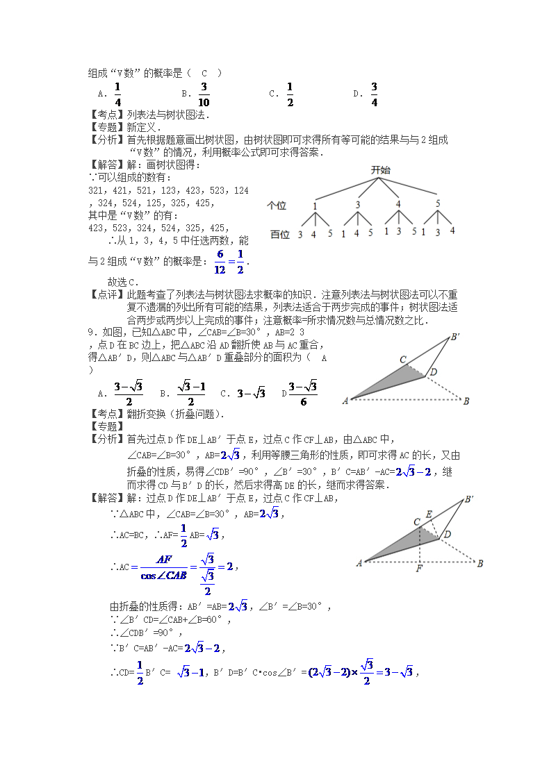 【文档名称】 2012浙江省舟山市中考数学真题及答案(Word版).doc
