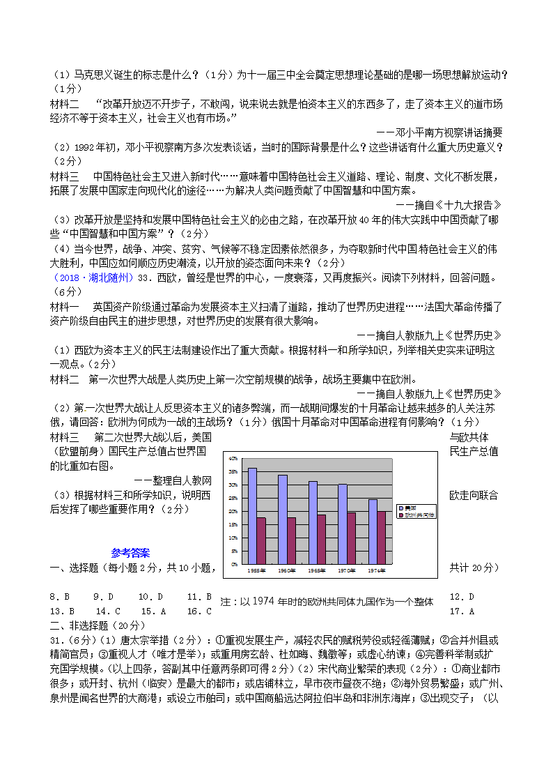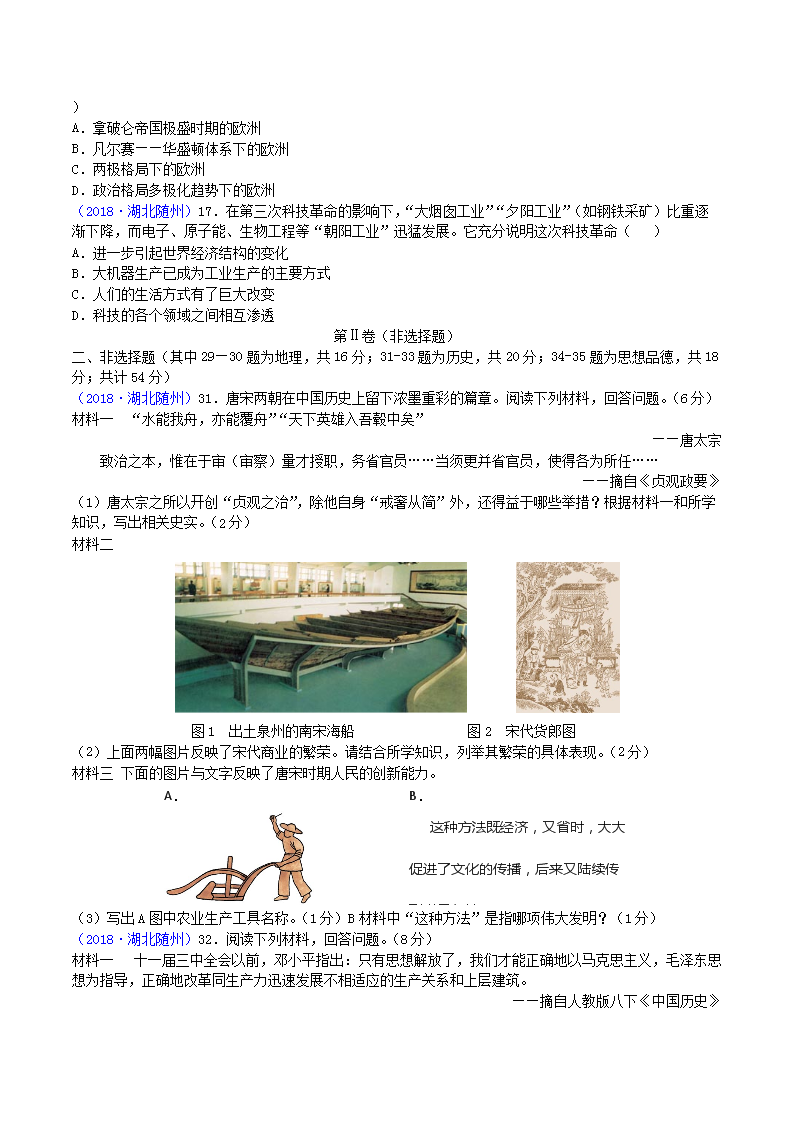 【文档名称】 2018年湖北省随州市中考历史真题及答案(Word版).doc