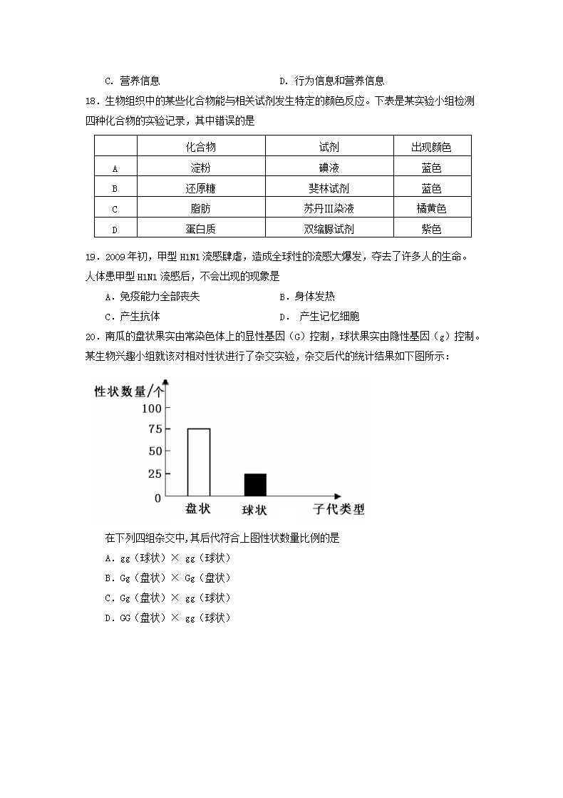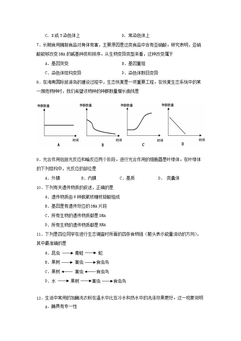 【文档预览】 无忧考网整理发布2010年海南普通高中会考生物真题及答案(Word版),前五页预览如下: