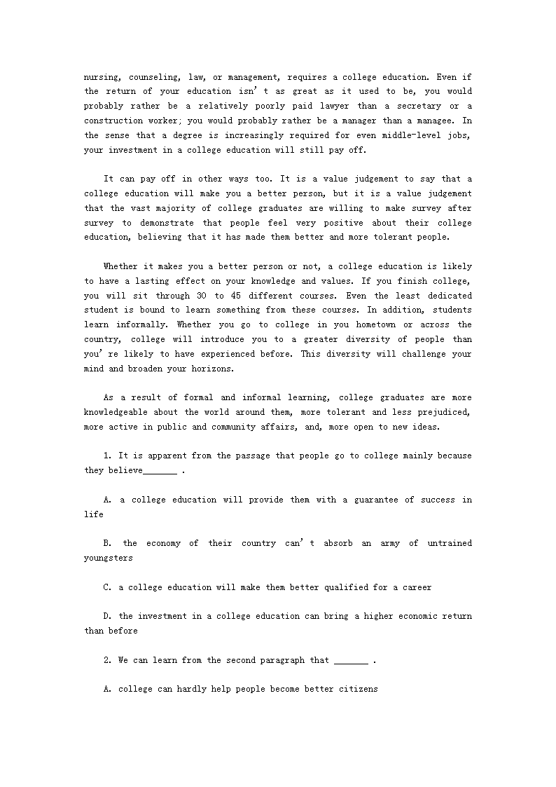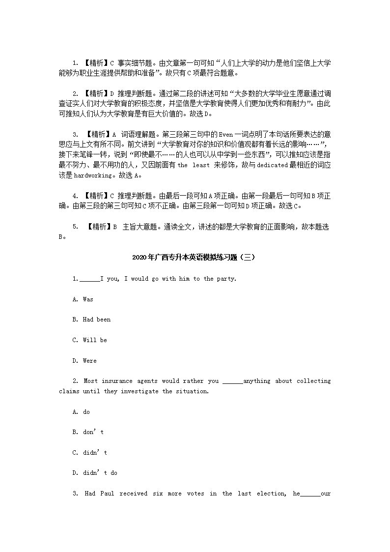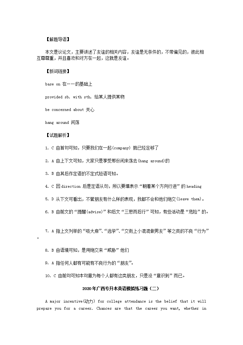【文档名称】 2020年广西专升本英语模拟练习题三套(Word版).doc