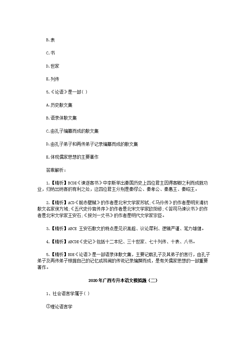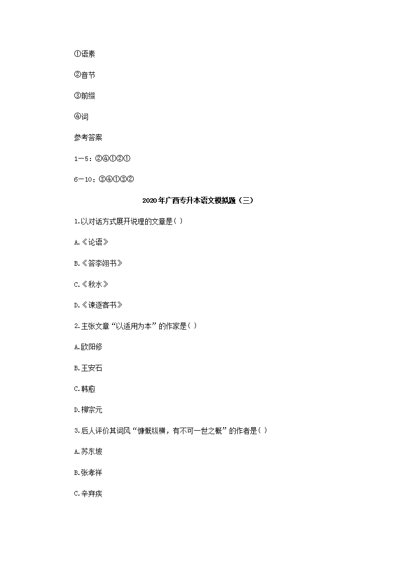 【文档名称】 2020年广西专升本语文模拟题三套(Word版).doc