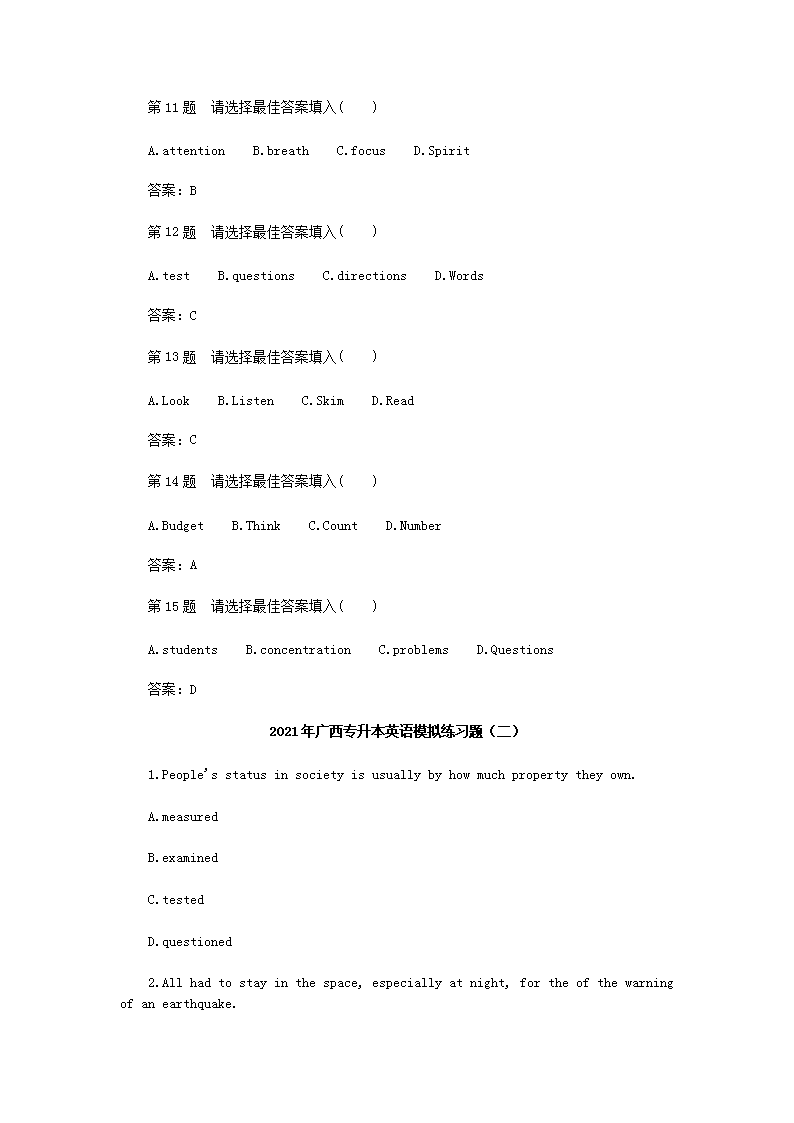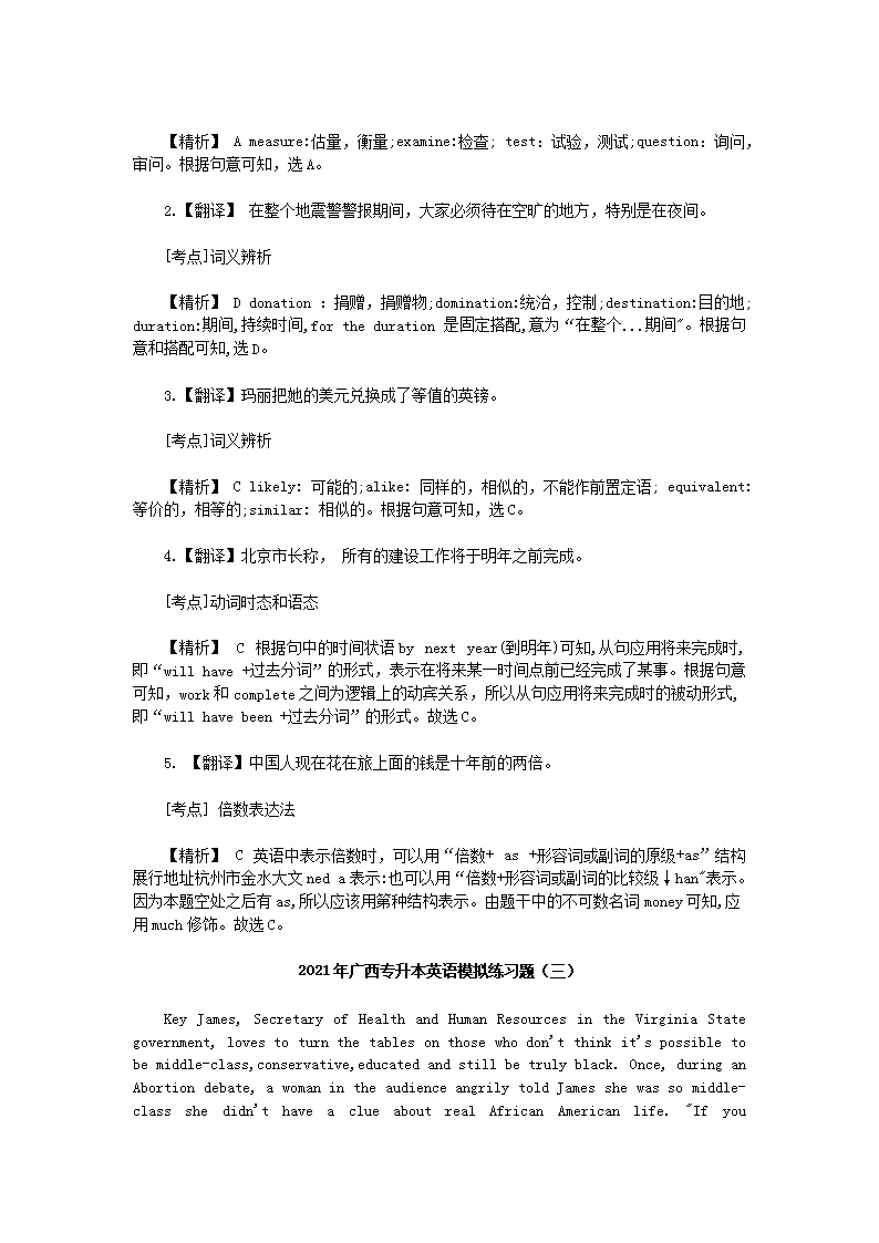 【文档名称】 2021年广西专升本英语模拟练习题四套(Word版).doc