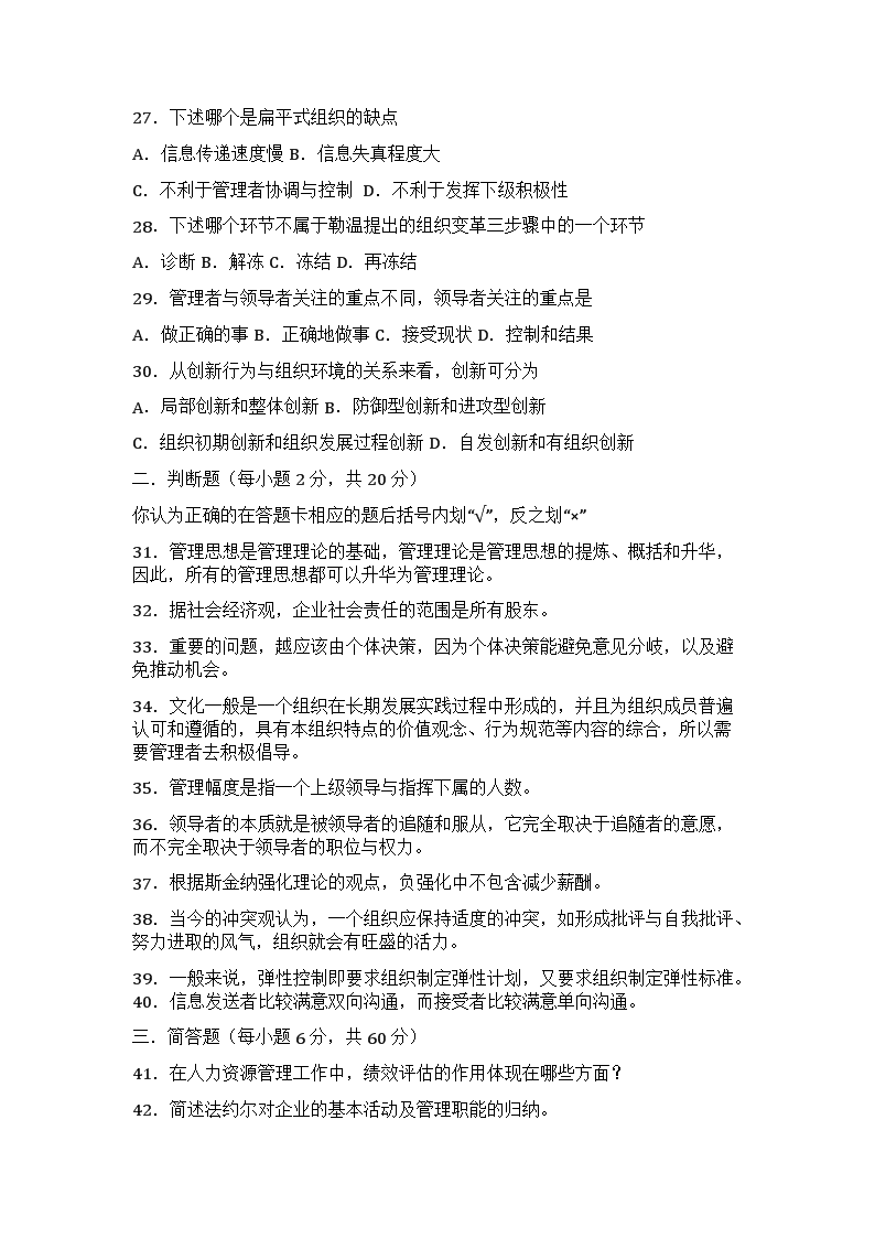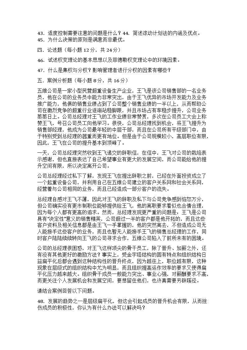 【文档名称】 2009年河南专升本考试管理学真题及答案(Word版).doc