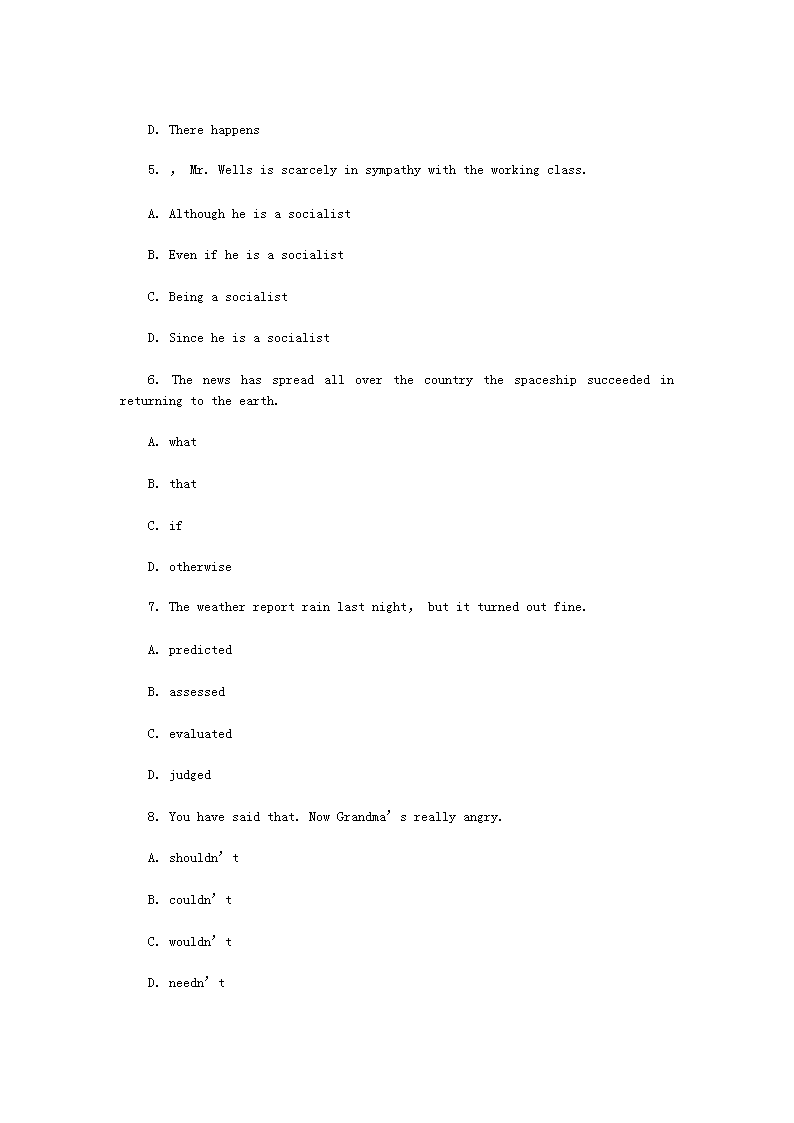 【文档预览】 无忧考网整理发布2020年湖南专升本英语练习题三套(Word版),前五页预览如下: