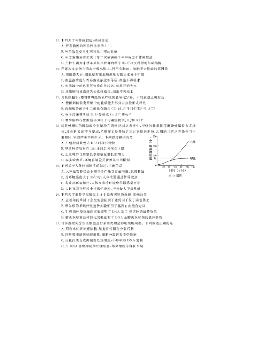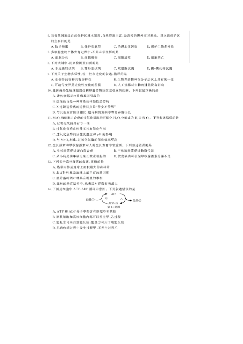 【文档名称】 2021年1月浙江普通高中学考生物真题及答案(图片版).doc