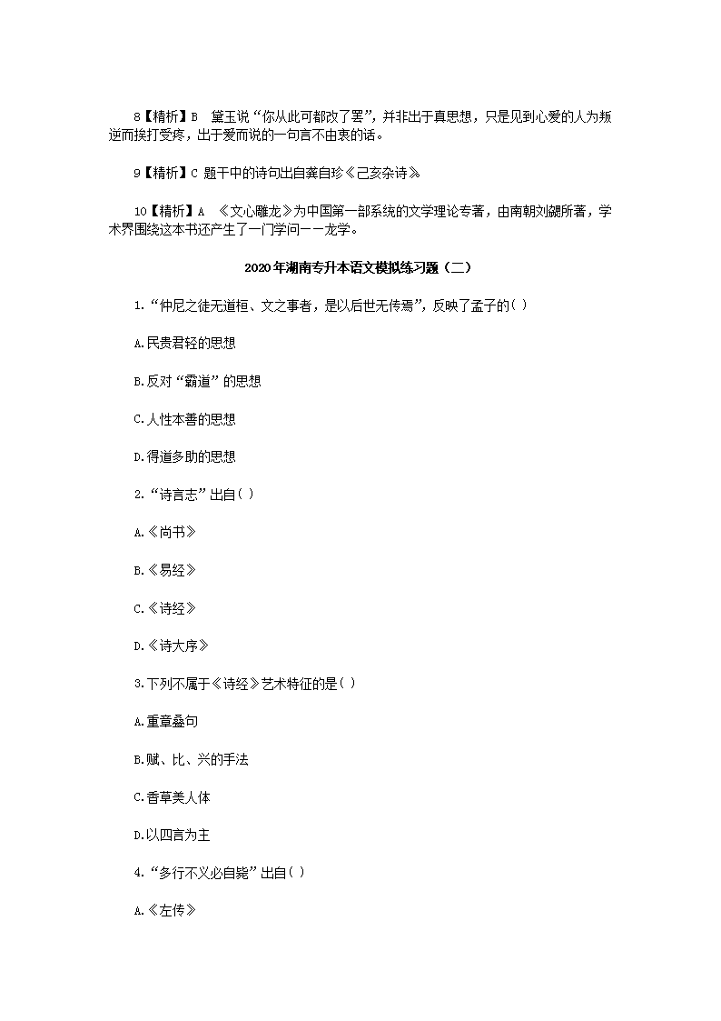 【文档名称】 2020年湖南专升本语文模拟练习题三套(Word版).doc