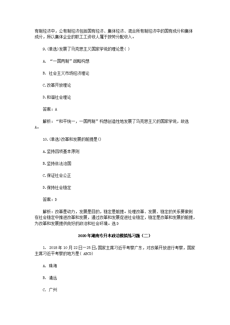 【文档名称】 2020年湖南专升本政治模拟练习题三套(Word版).doc