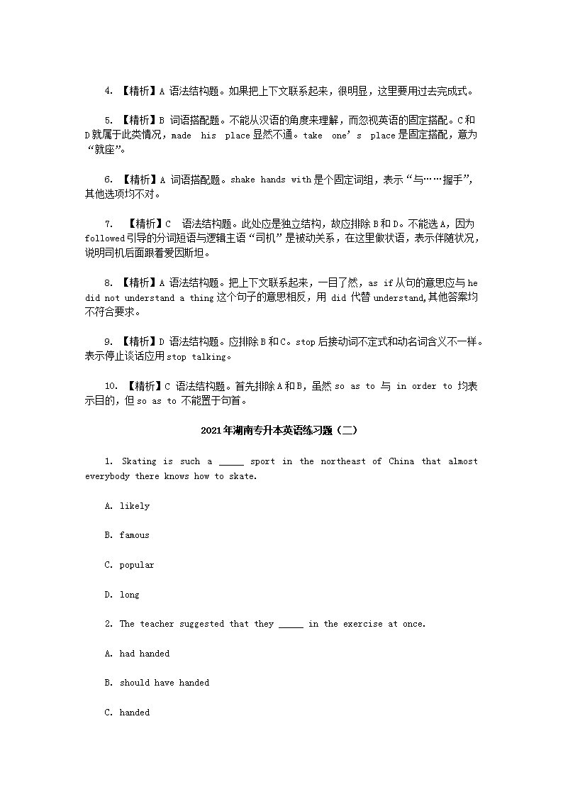 【文档名称】 2021年湖南专升本英语练习题三套(Word版).doc