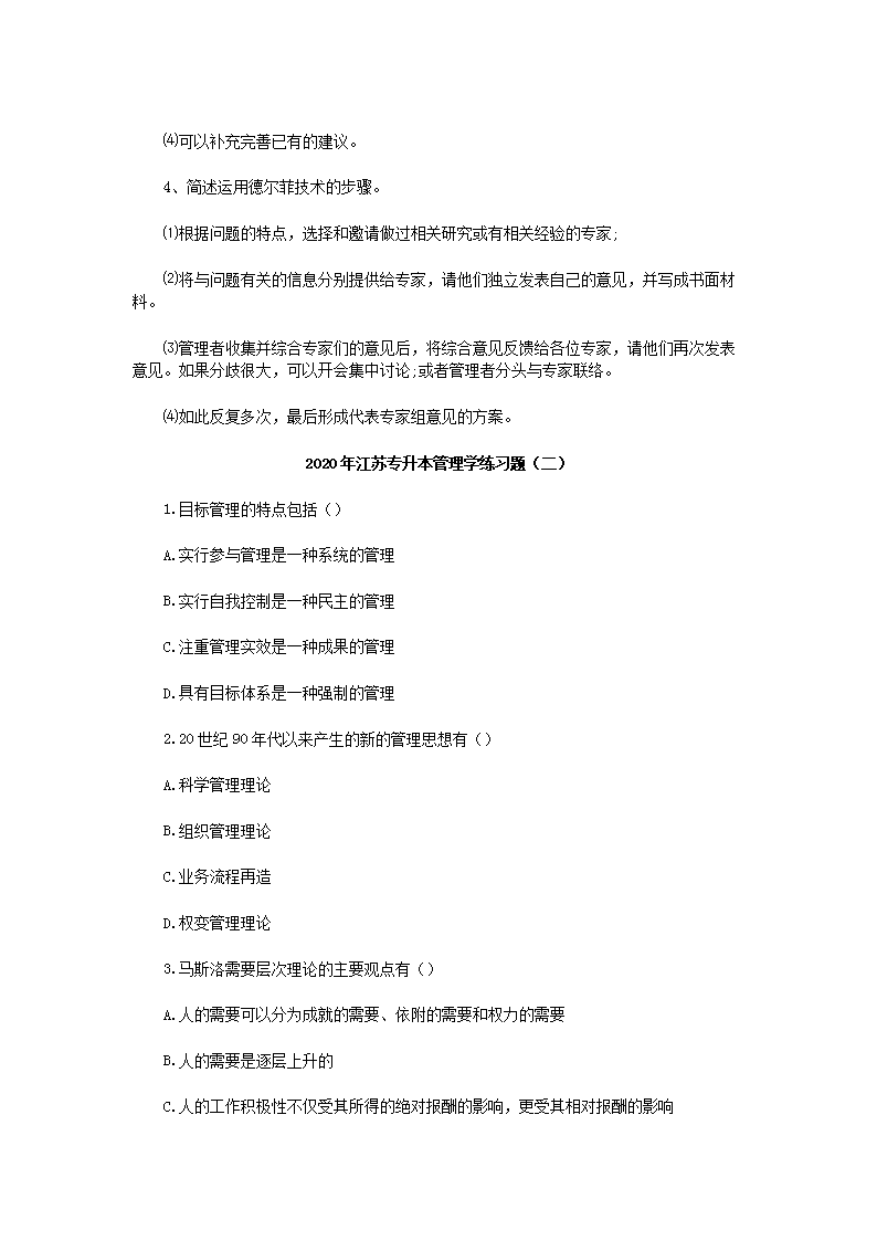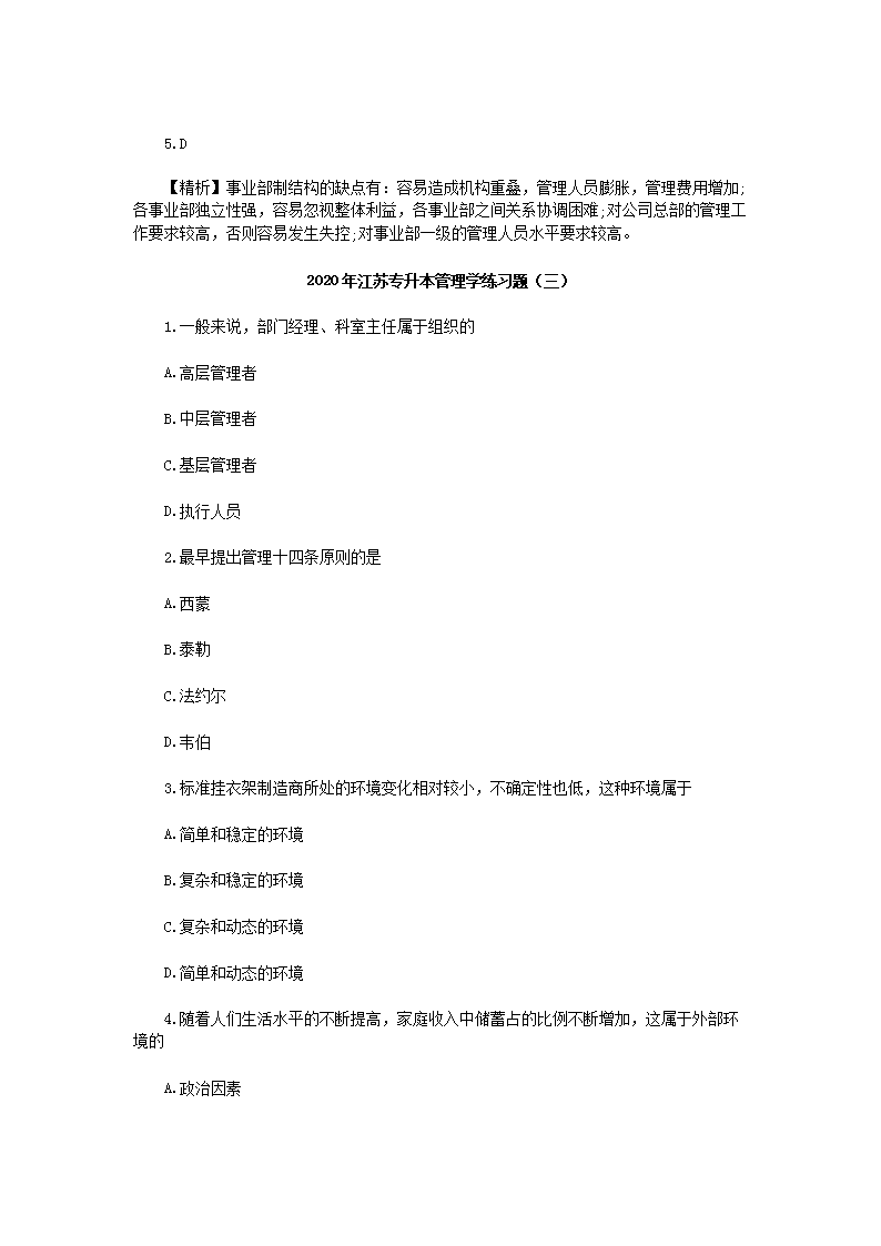 【文档预览】 无忧考网整理发布2020年江苏专升本管理学练习题三套(Word版),前五页预览如下: