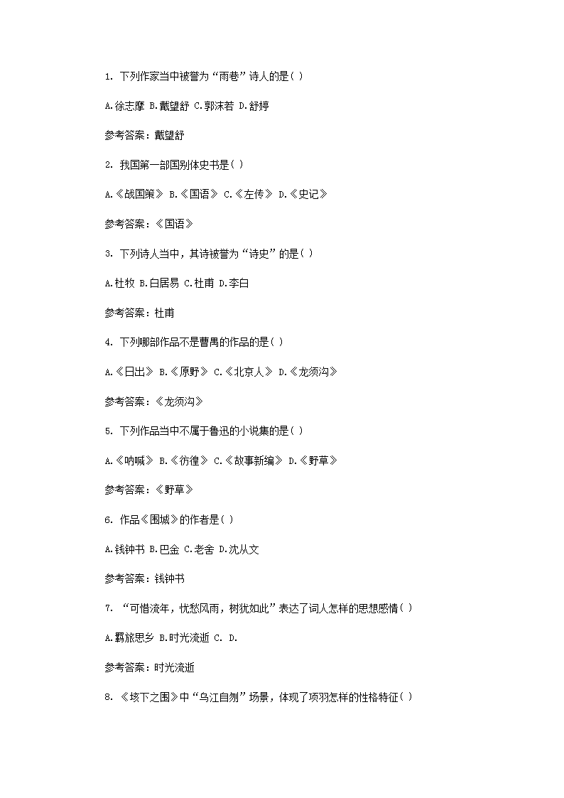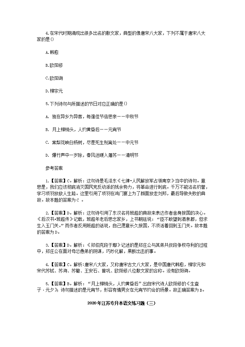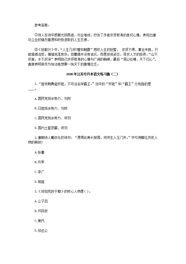 【文档名称】 2020年江苏专升本语文练习题三套(Word版).doc