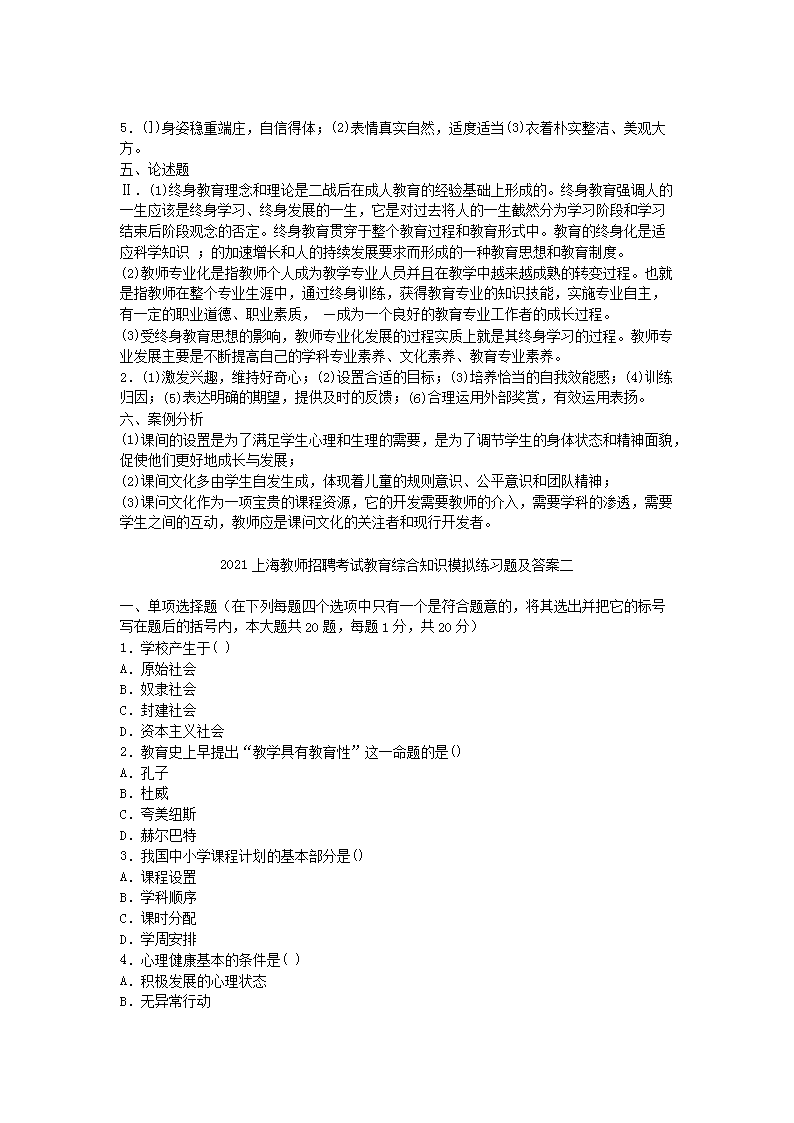 【文档预览】 无忧考网整理发布2021上海教师招聘考试教育综合知识模拟练习题及答案三套(Word版),前五页预览如下: