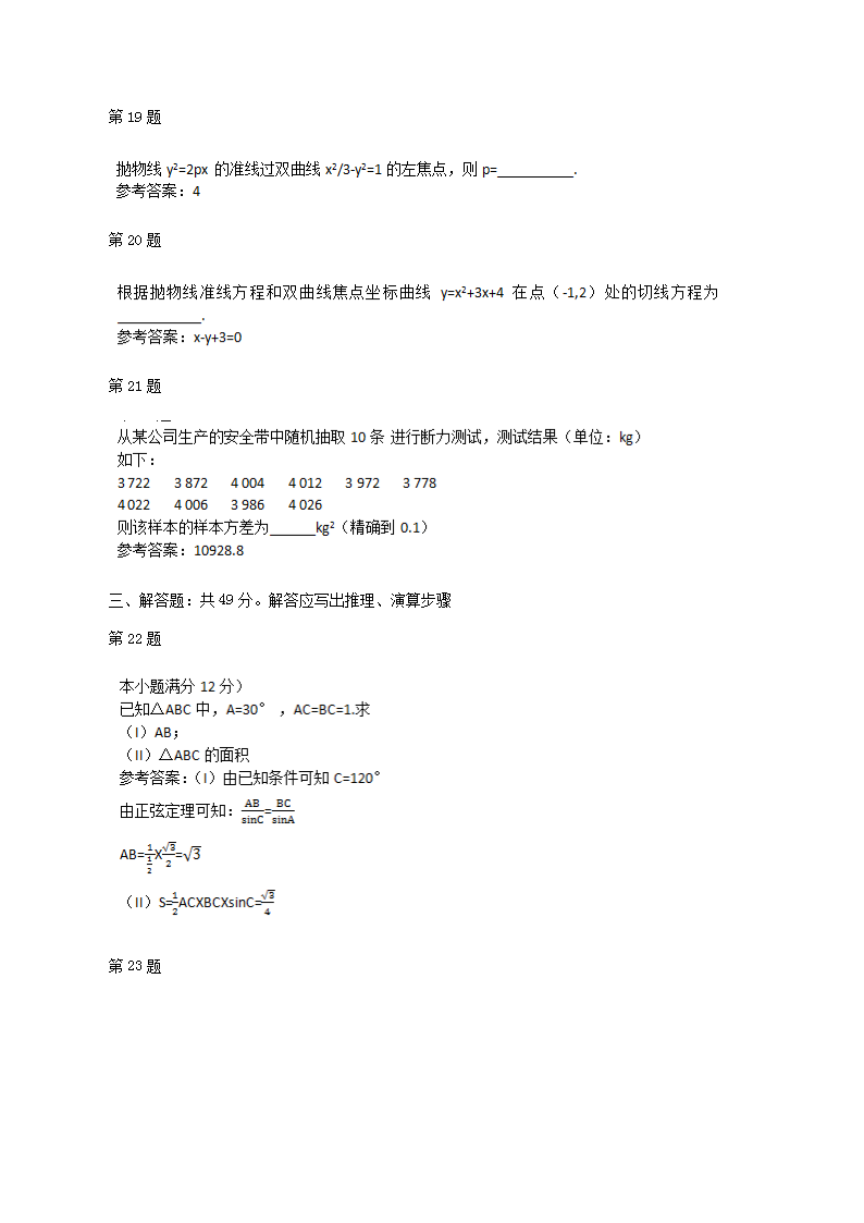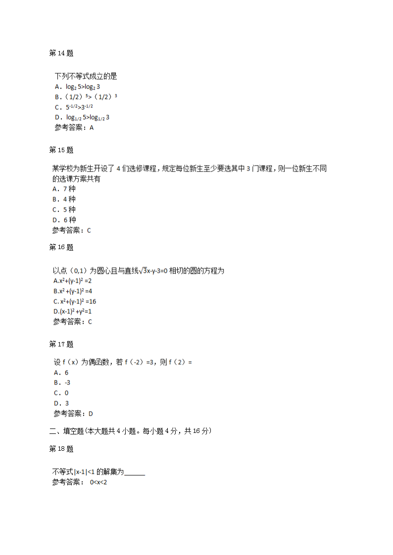 【文档名称】 2015年北京成人高考高起点数学(理)真题及答案(Word版).doc