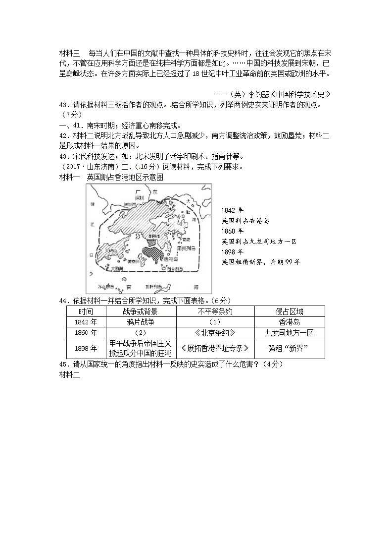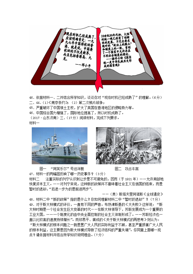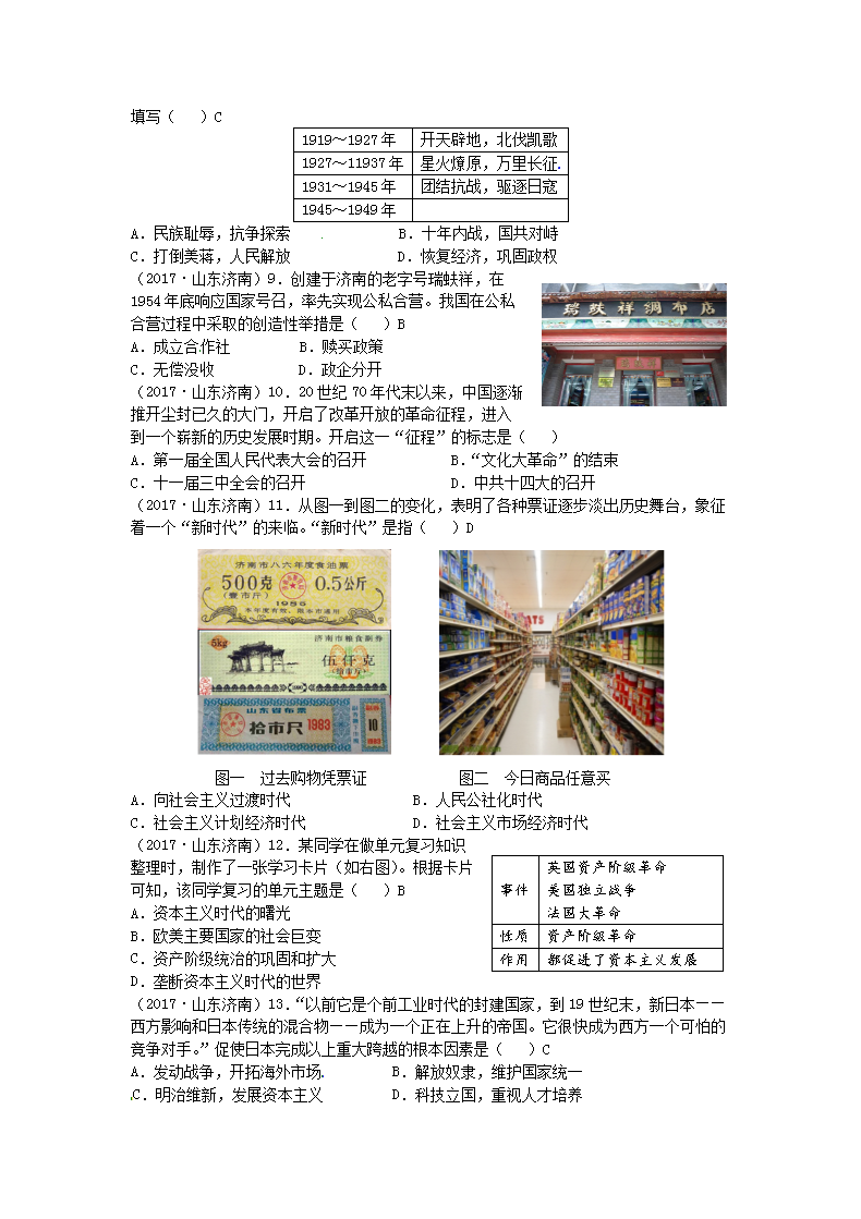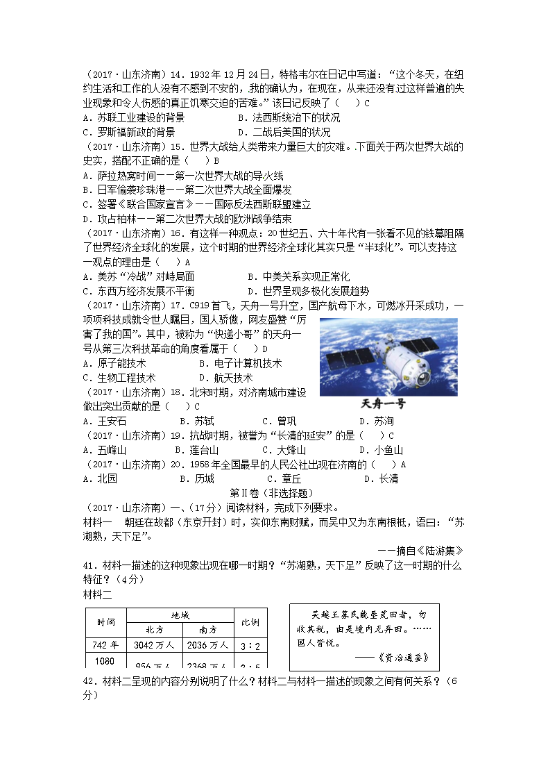 【文档名称】 2017山东省济南市中考历史真题(Word版).doc