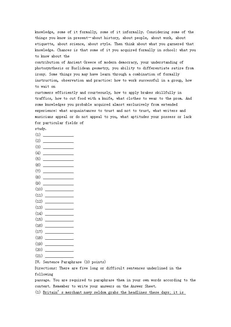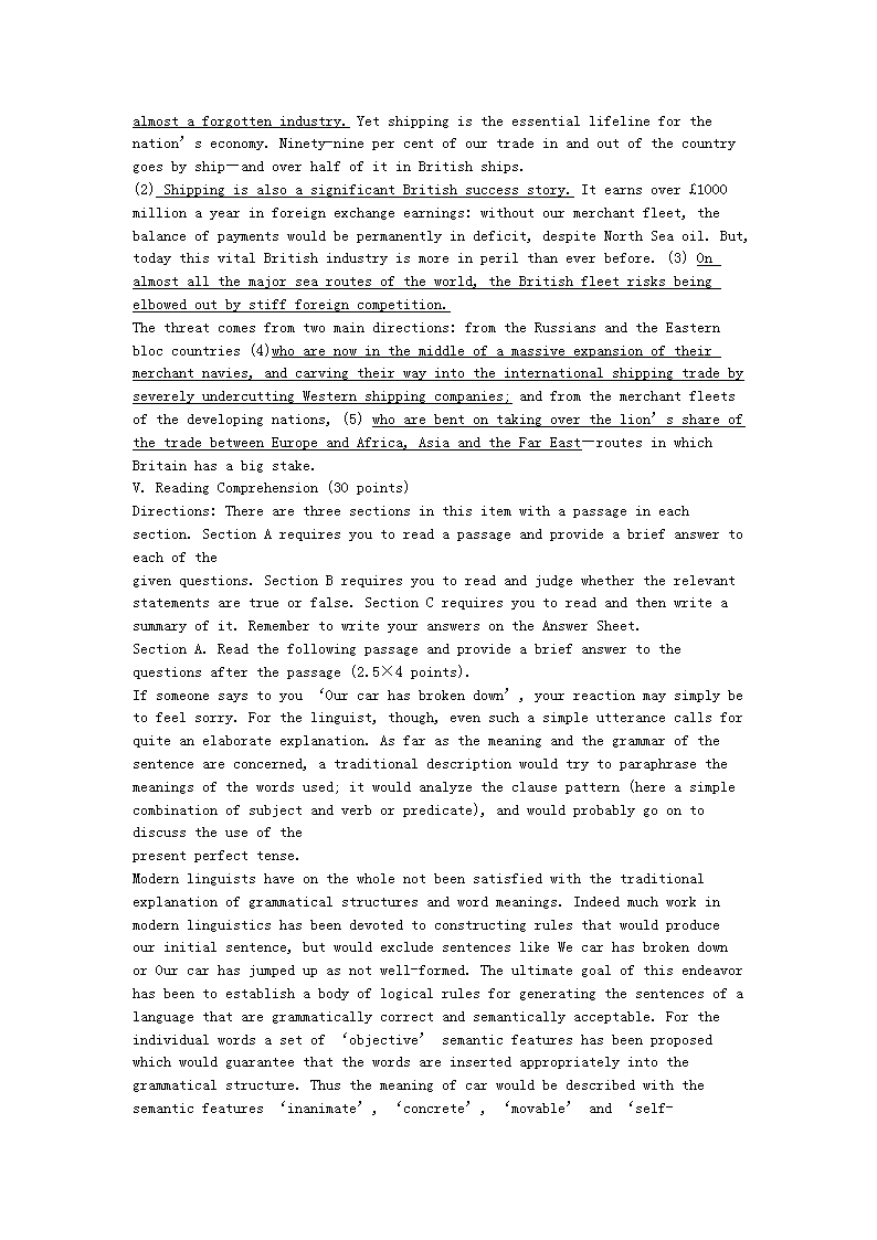 【文档预览】 无忧考网整理发布2016年浙江宁波大学基础英语考研真题(Word版),前五页预览如下: