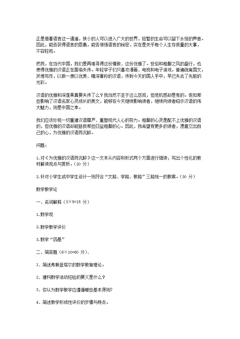 【文档预览】 无忧考网整理发布2016年浙江宁波大学教学论考研真题(Word版),前五页预览如下: