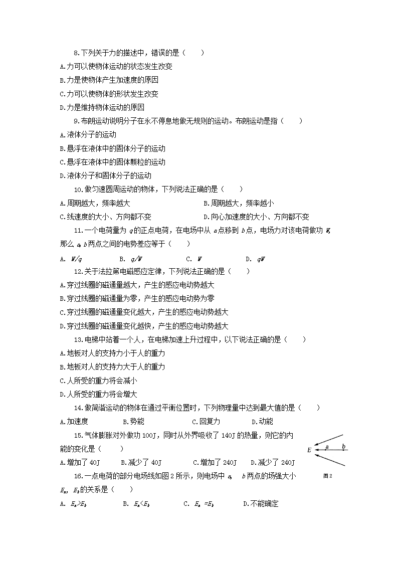 【文档名称】 2008年重庆普通高中会考物理真题及答案(Word版).doc