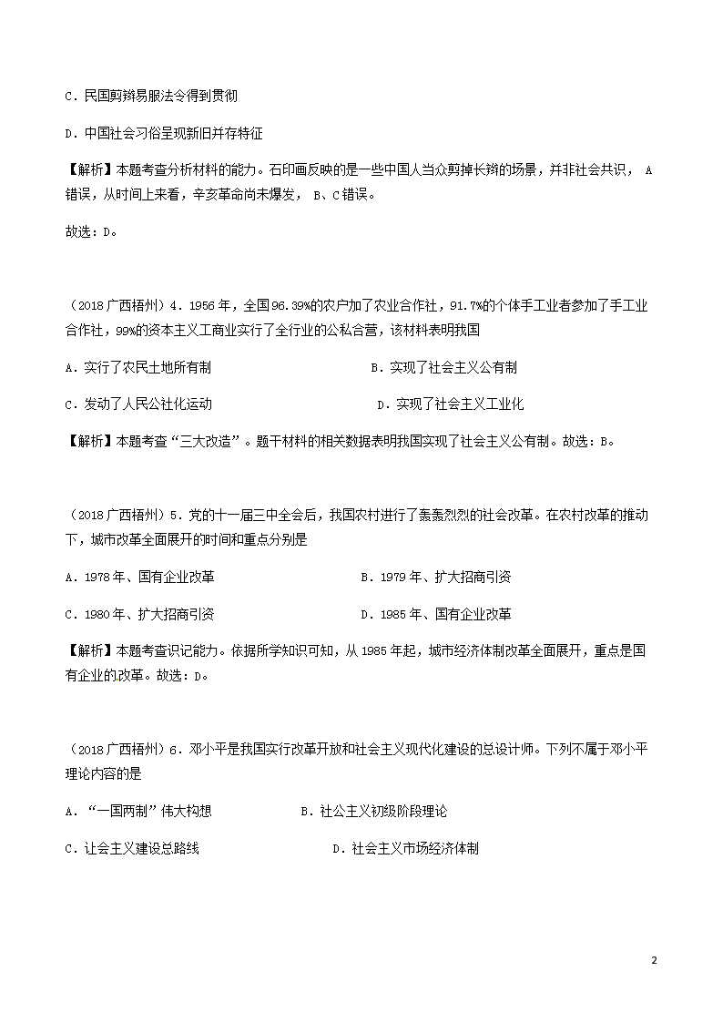 【文档名称】 2018年广西梧州市中考历史真题及答案(Word版).doc