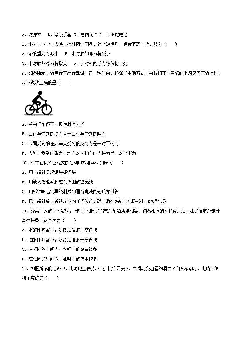 【文档名称】 2018年广西桂林市中考物理真题及答案(Word版).doc