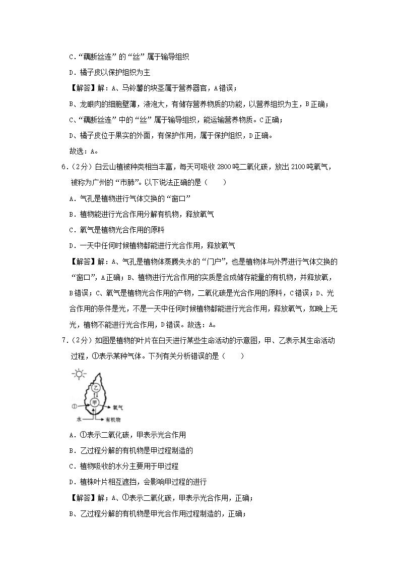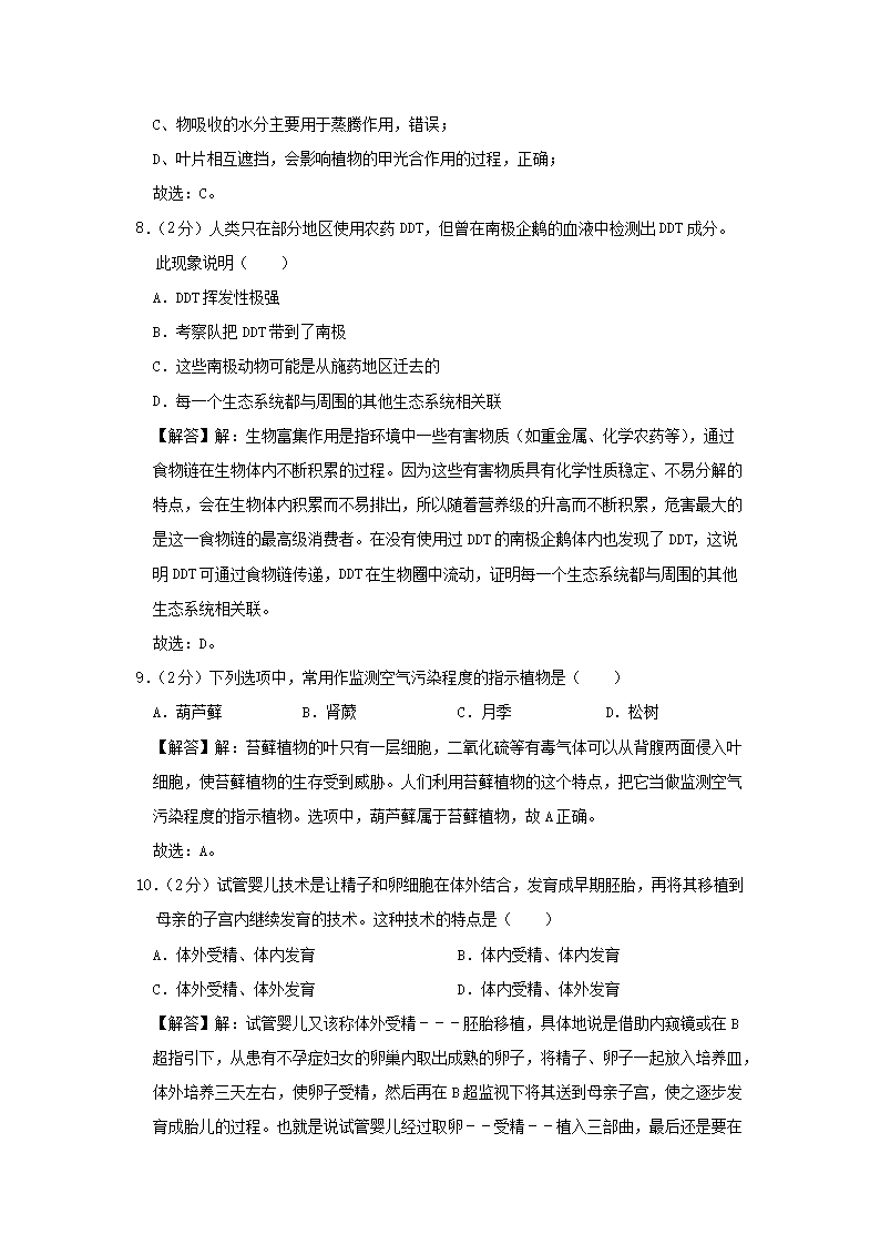 【文档名称】 2019年广东省广州市中考生物试题及答案(Word版).doc