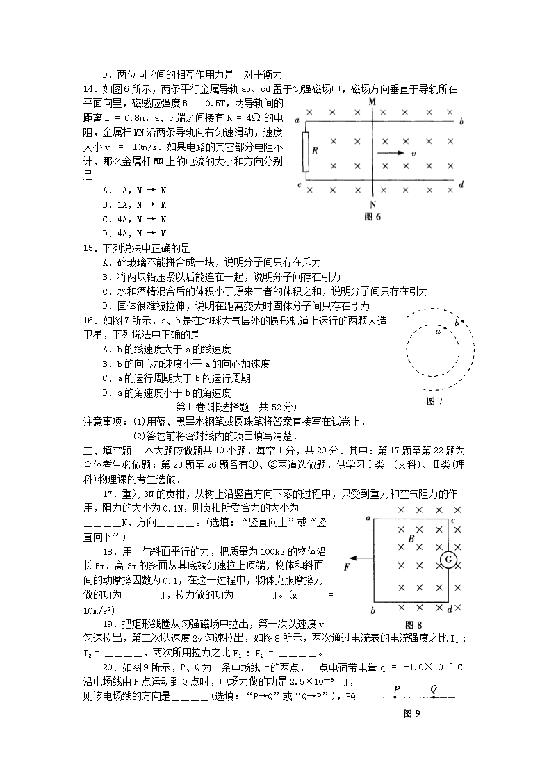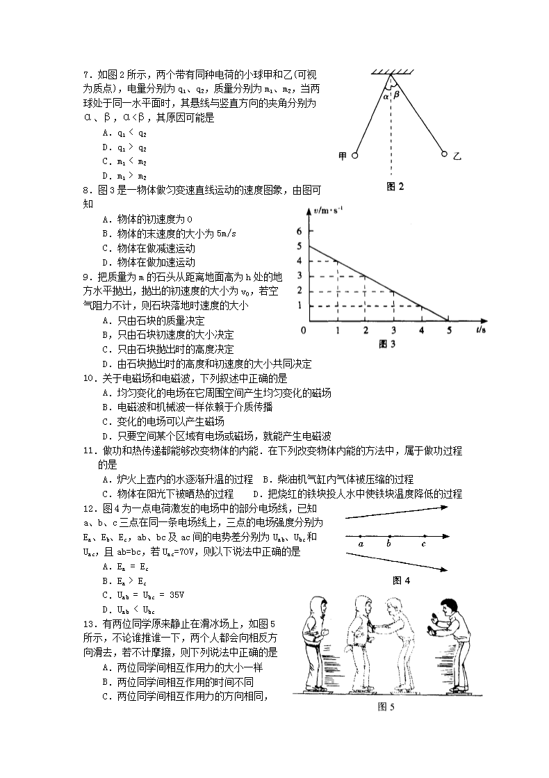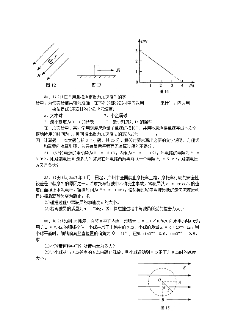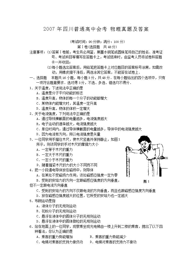 【文档名称】 2007年四川普通高中会考物理真题及答案(Word版).doc