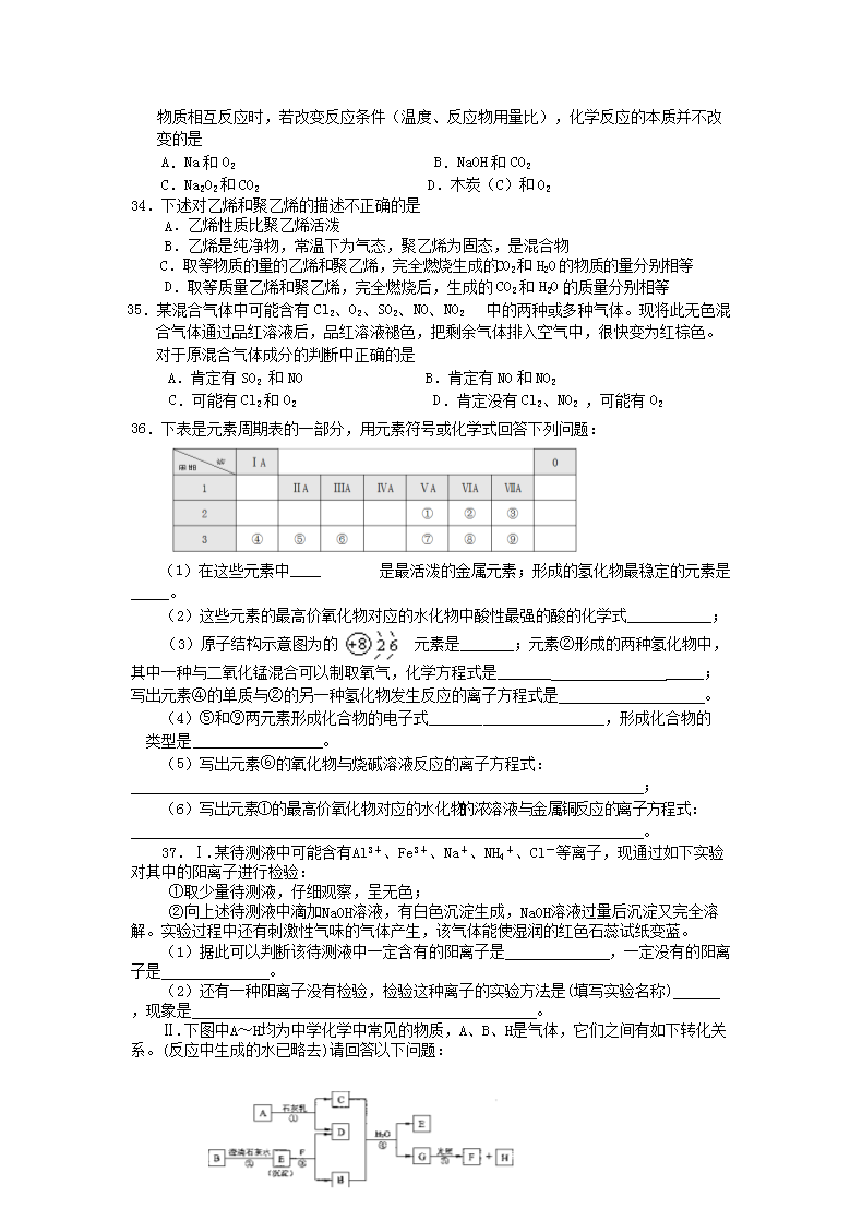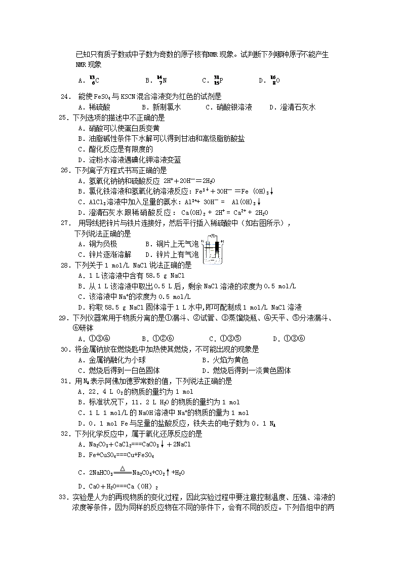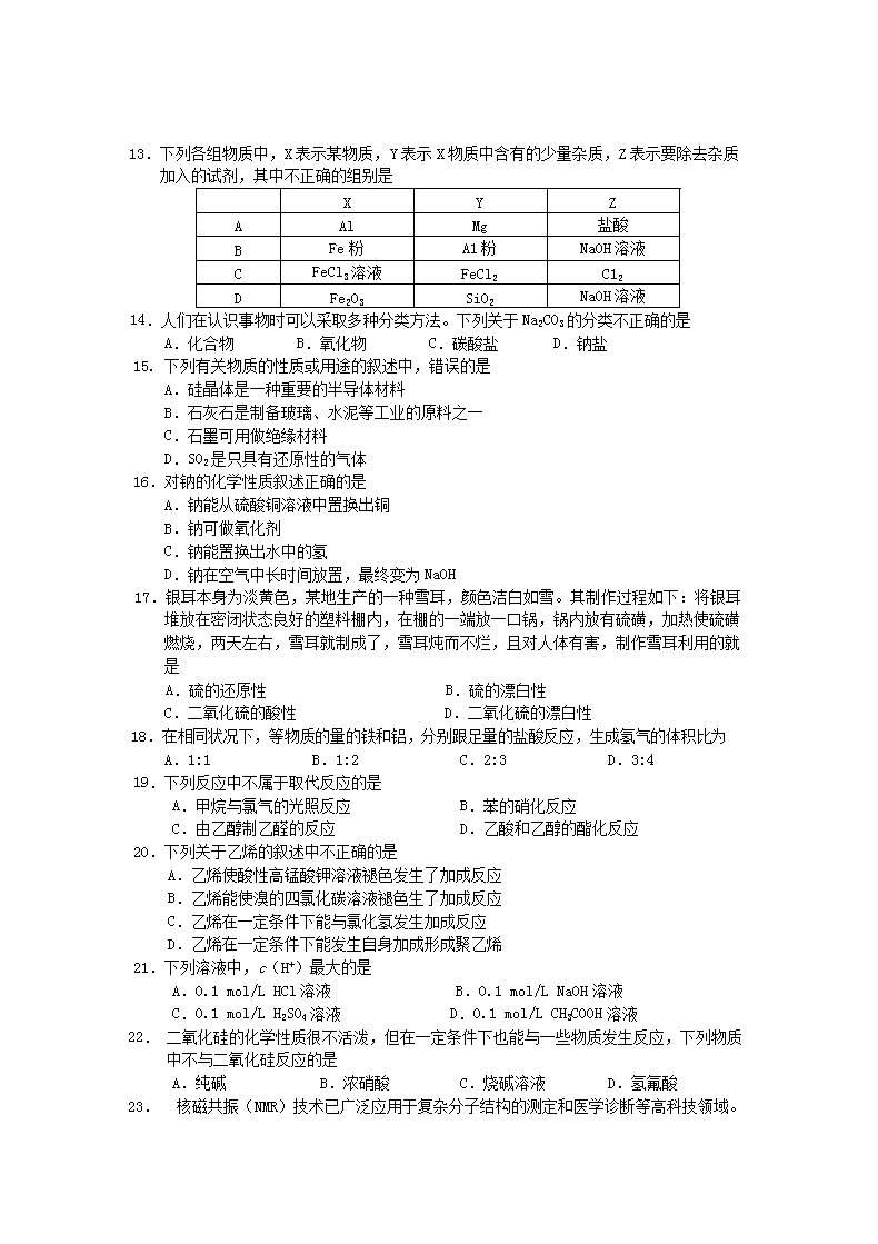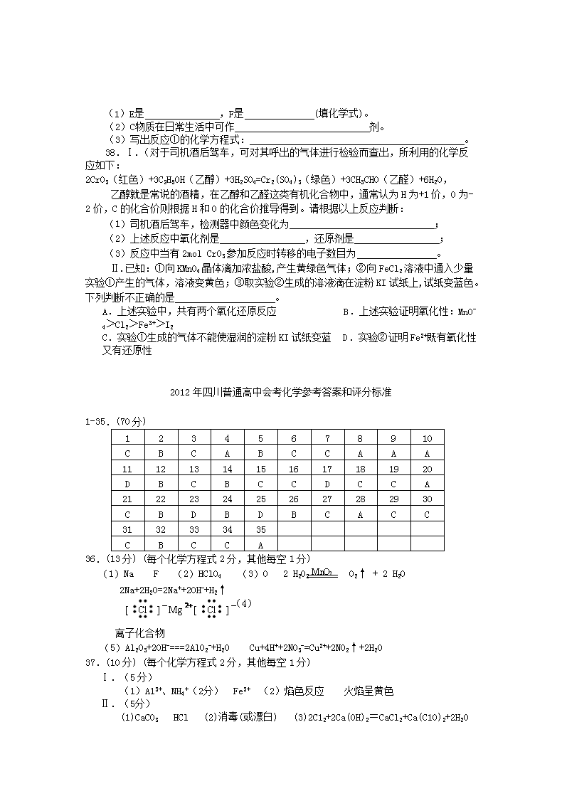 【文档名称】 2012年四川普通高中会考化学真题及答案(Word版).doc