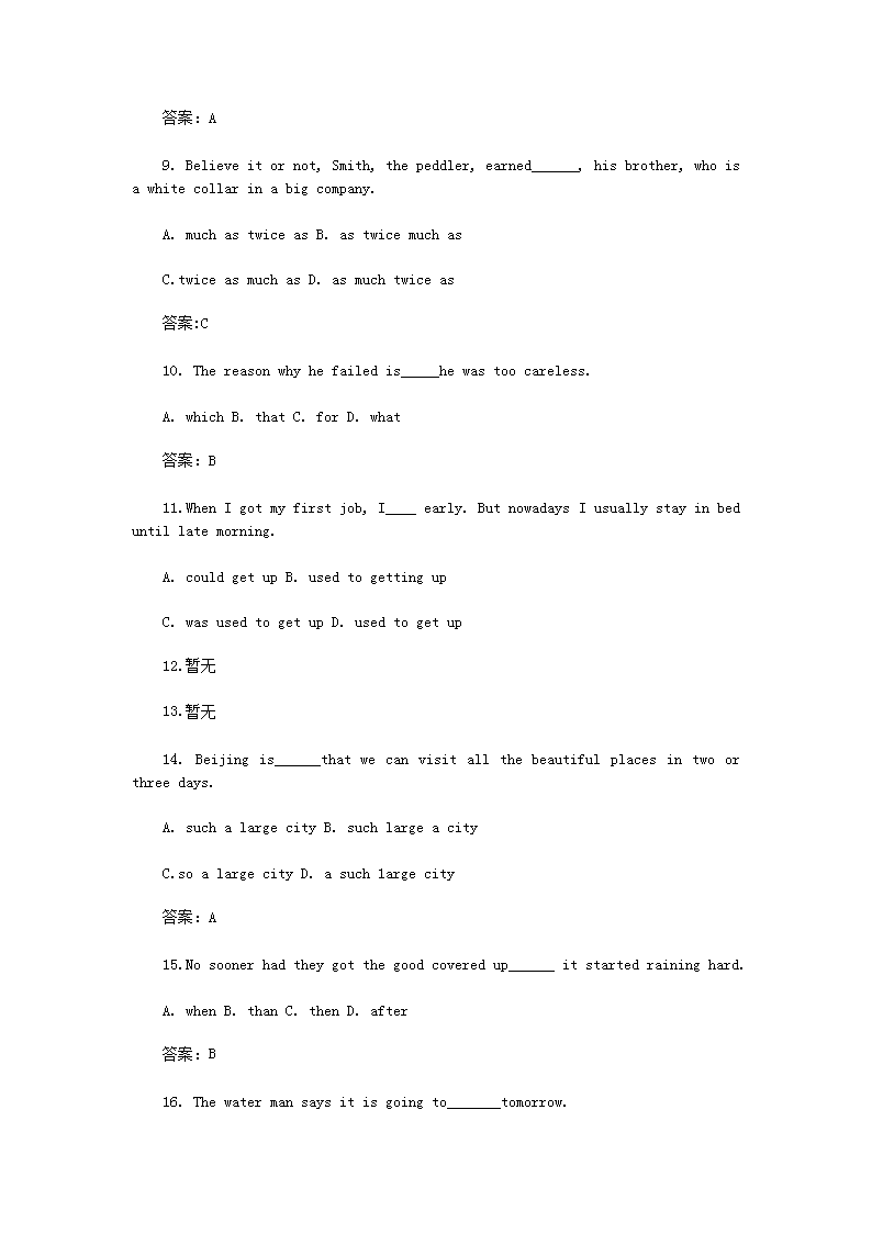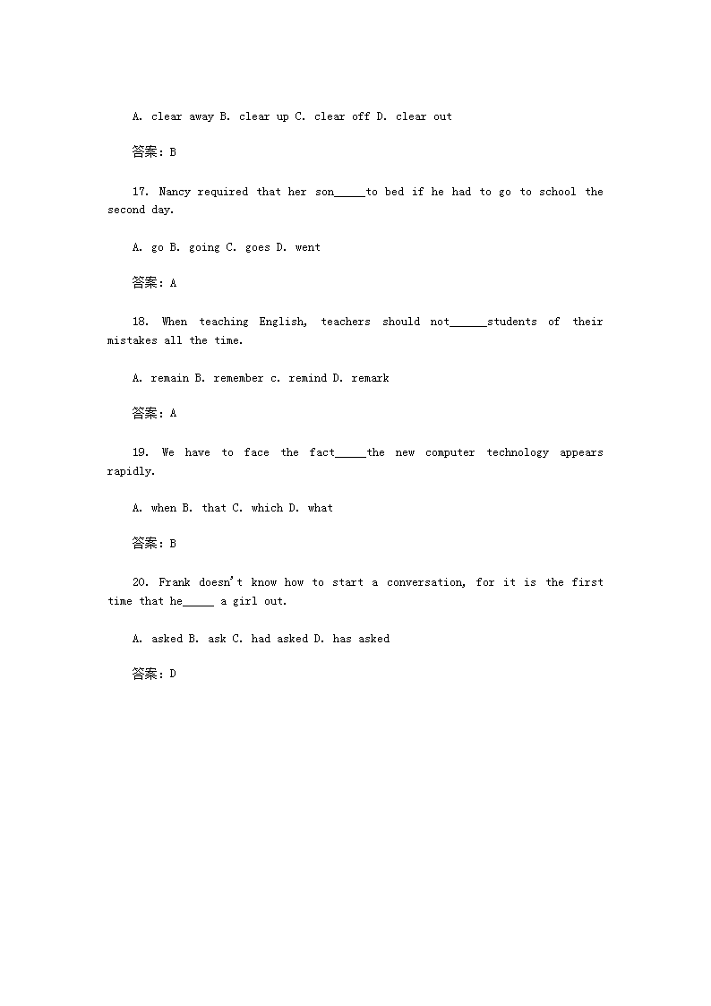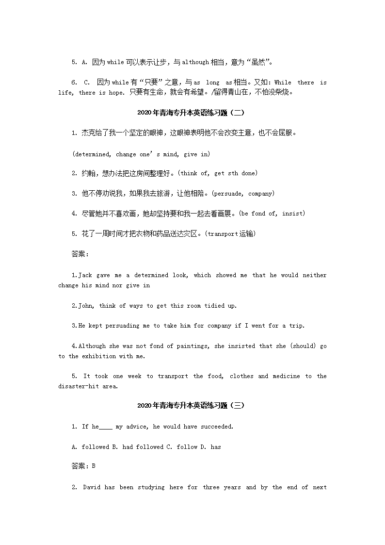 【文档预览】 无忧考网整理发布2020年青海专升本英语练习题三套(Word版),前五页预览如下: