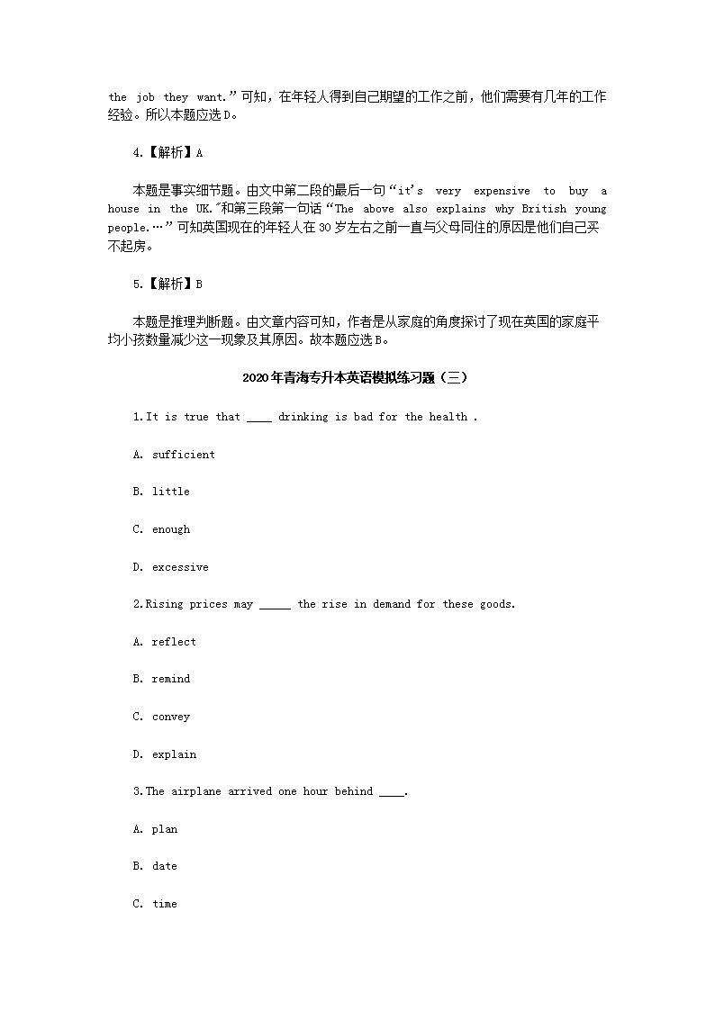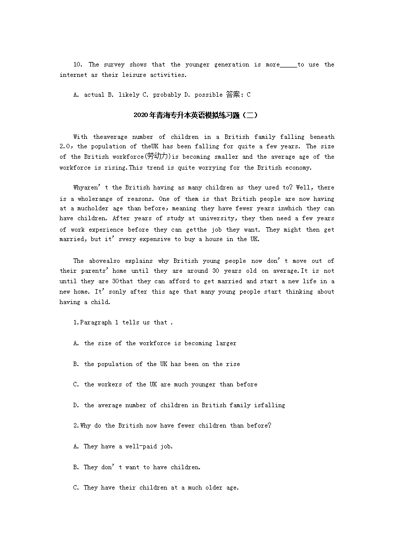 【文档名称】 2020年青海专升本英语模拟练习题三套(Word版).doc