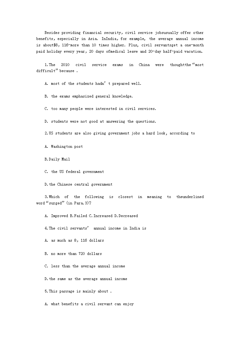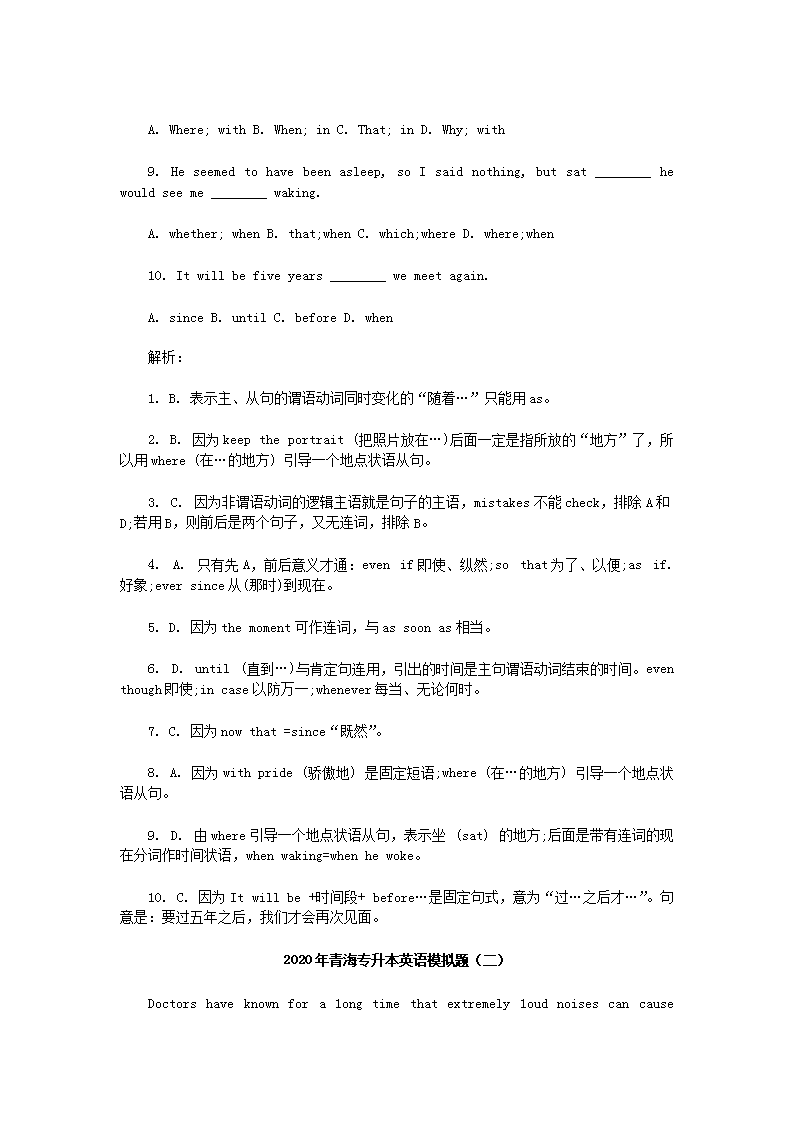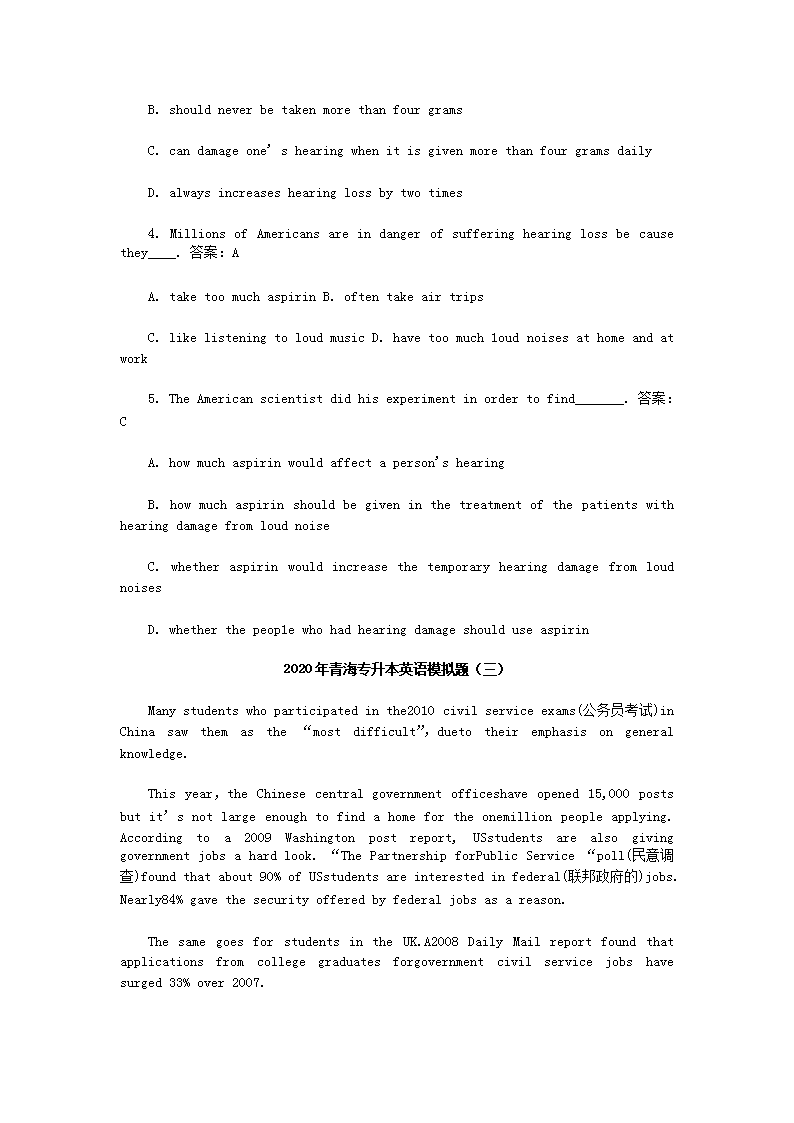 【文档预览】 无忧考网整理发布2020年青海专升本英语模拟题三套(Word版),前五页预览如下: