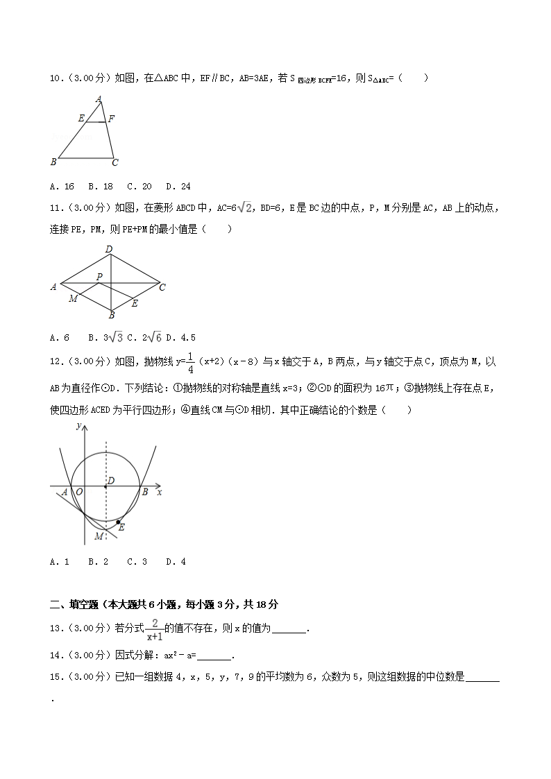 【文档名称】 2018年广西贵港市中考数学真题及答案(Word版).doc