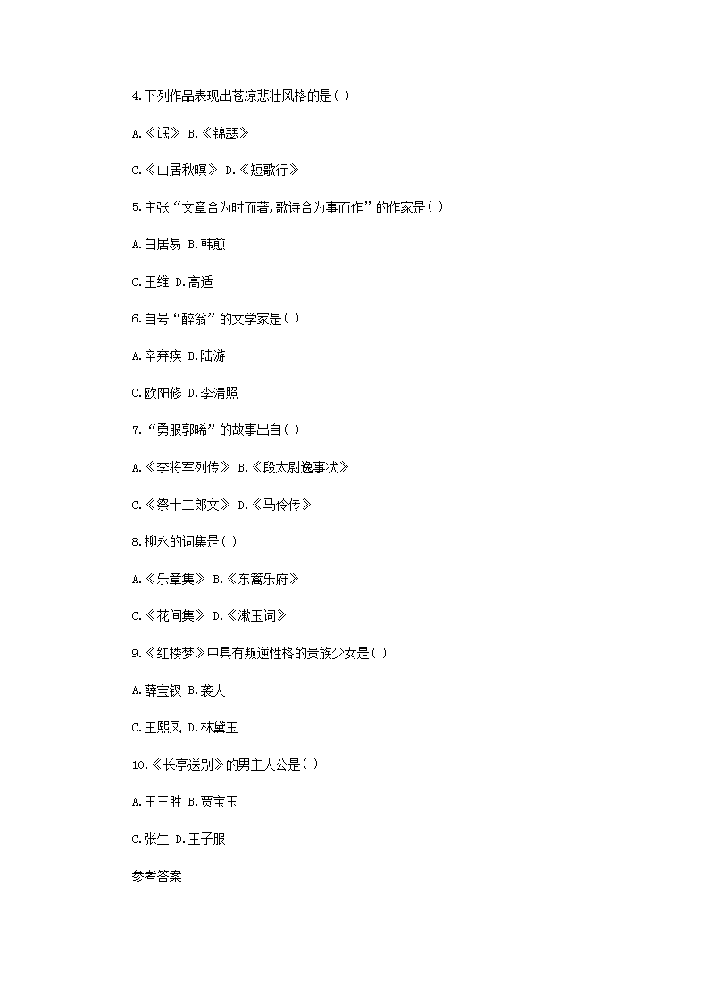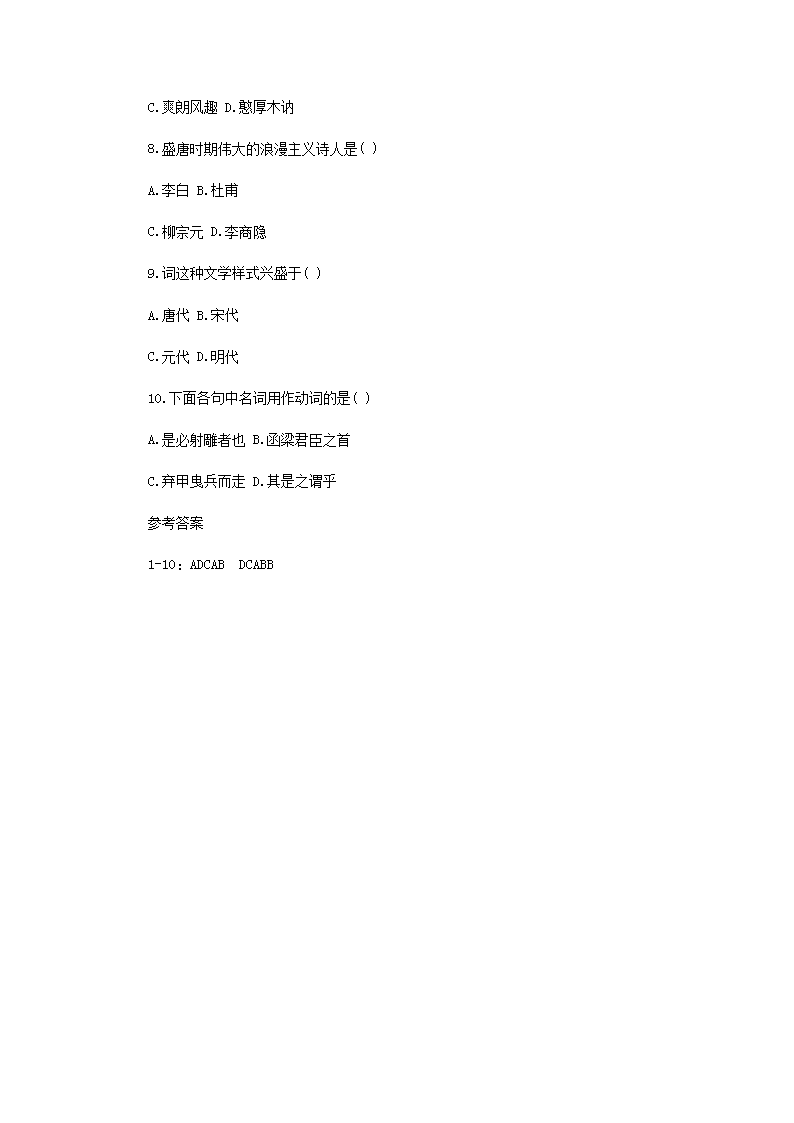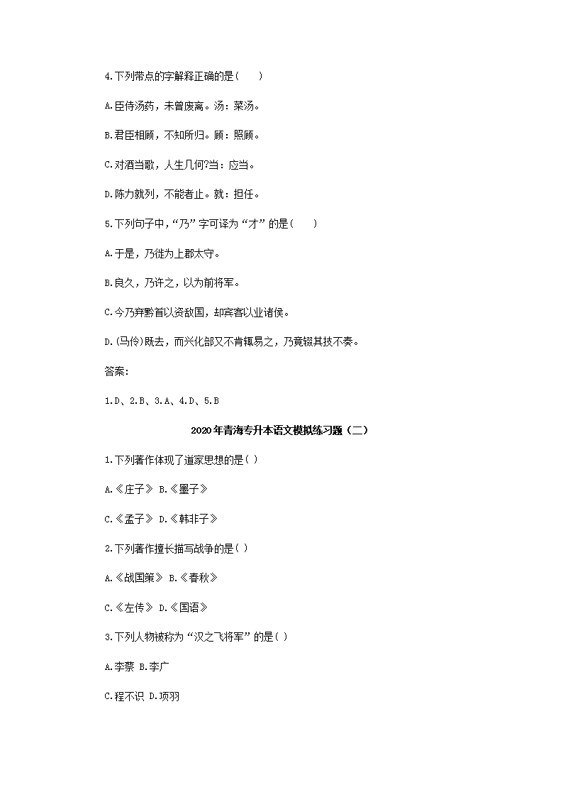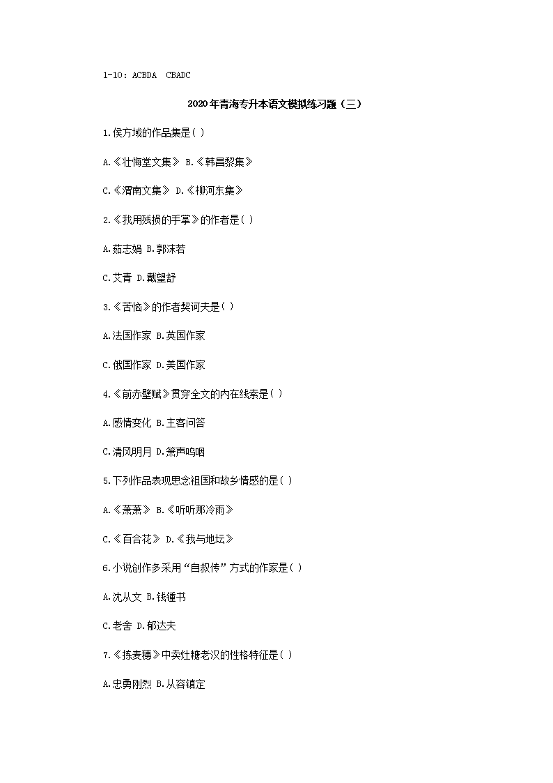 【文档名称】 2020年青海专升本语文模拟练习题三套(Word版).doc