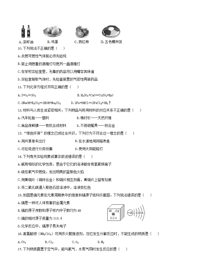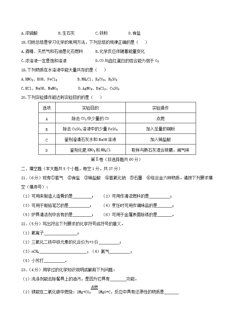 【文档名称】 2018年广西百色市中考化学真题及答案(Word版).doc