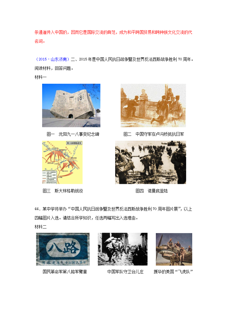 【文档名称】 2015山东省济南市中考历史真题及答案(Word版).doc