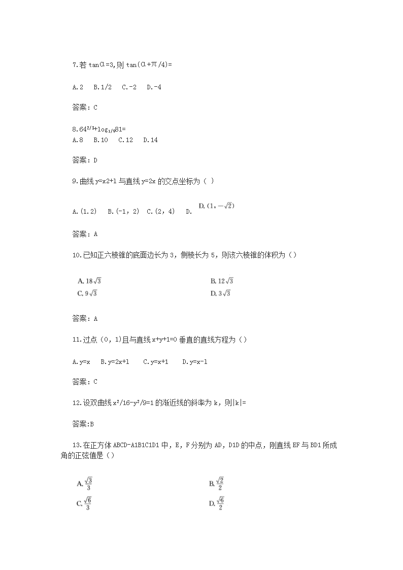 【文档名称】 2016年北京成人高考高起点数学理真题及答案(Word版).doc