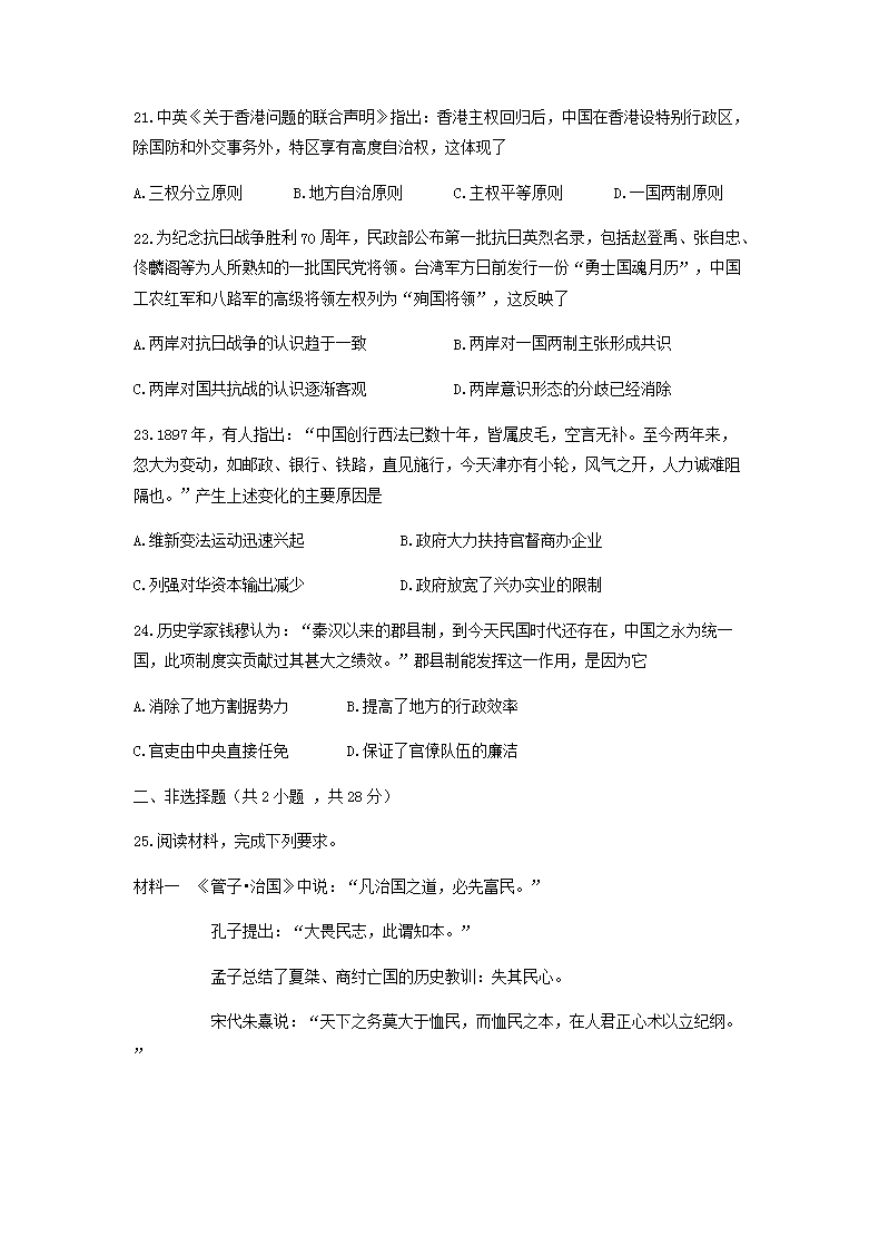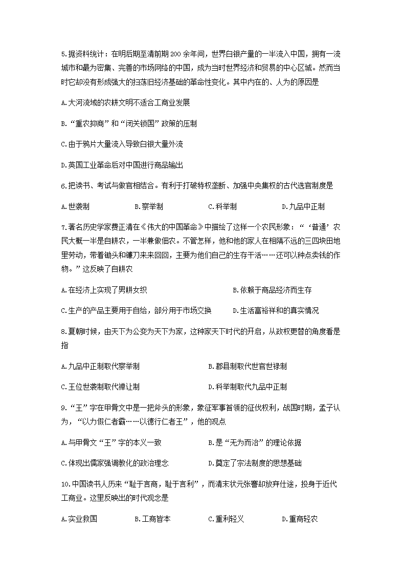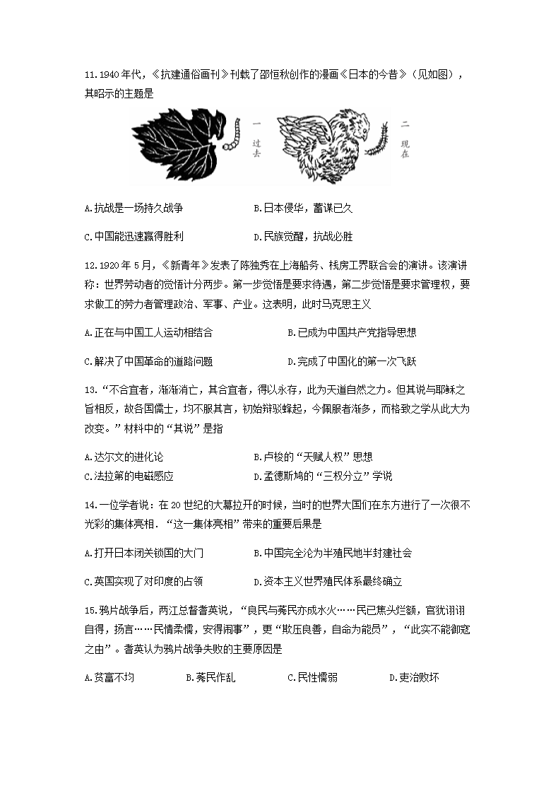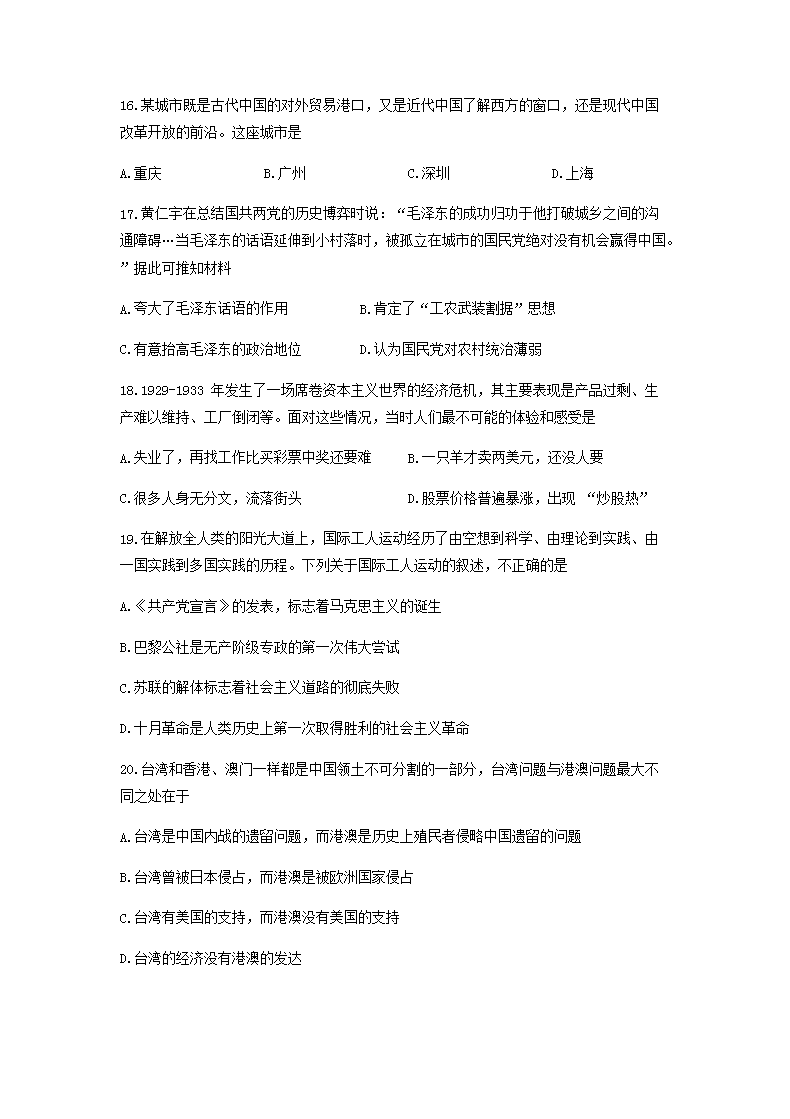 【文档名称】 2019年重庆普通高中会考历史真题及答案(Word版).doc