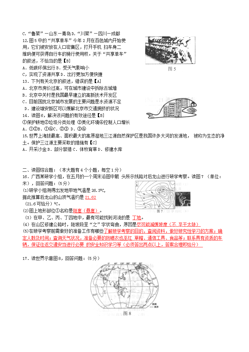 【文档名称】 2018年广西百色市中考地理真题及答案(Word版).doc