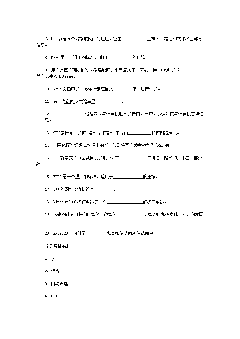 【文档预览】 无忧考网整理发布2020年内蒙古专升本计算机模拟题四套(Word版),前五页预览如下: