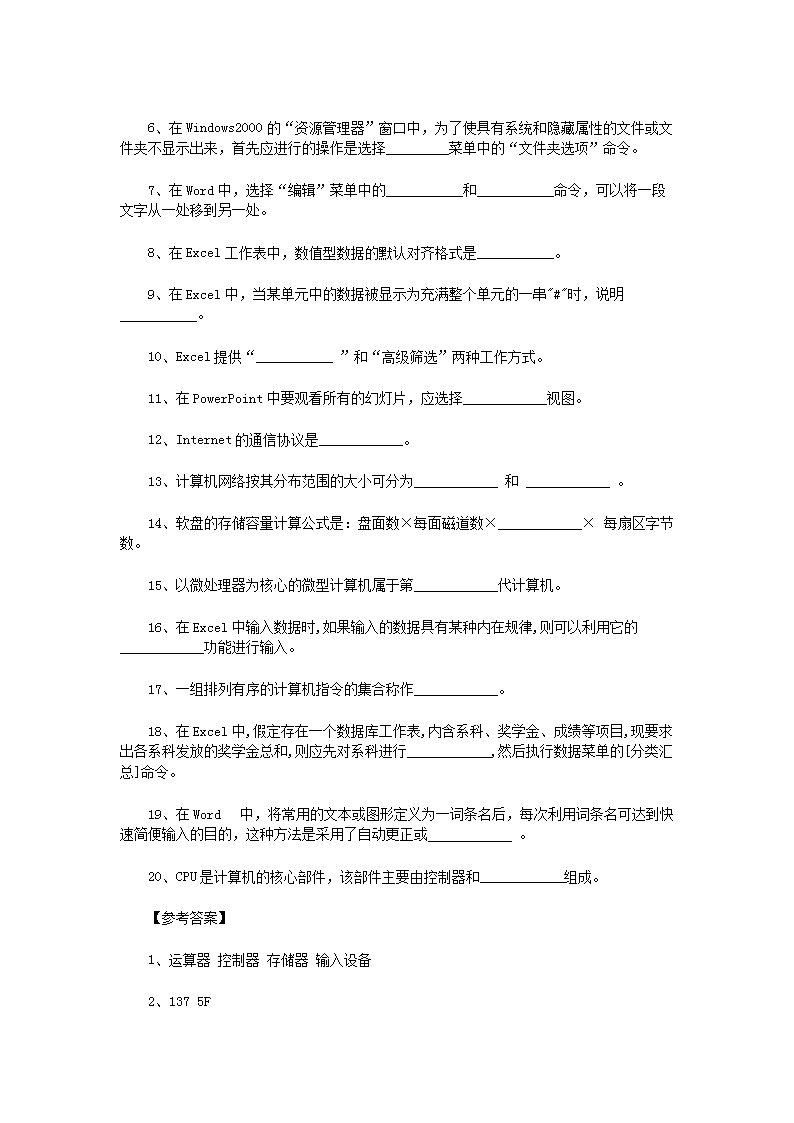【文档名称】 2020年内蒙古专升本计算机模拟题四套(Word版).doc