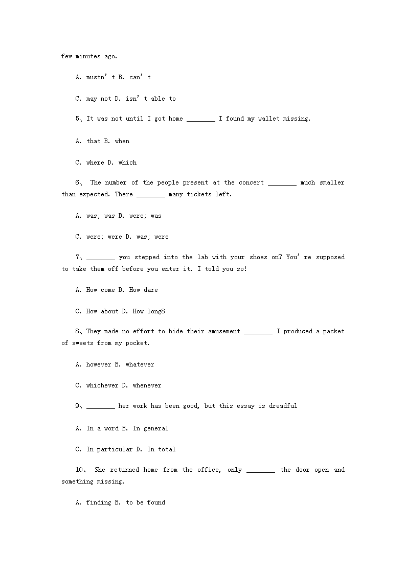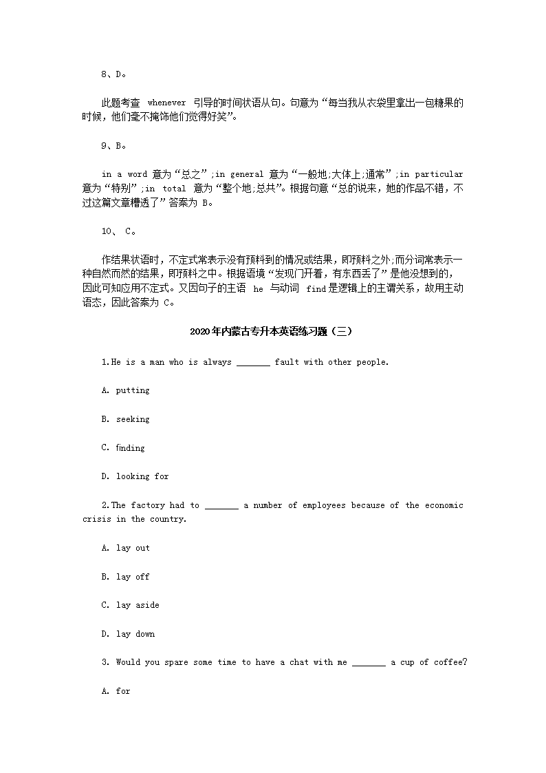 【文档名称】 2020年内蒙古专升本英语练习题三套(Word版).doc