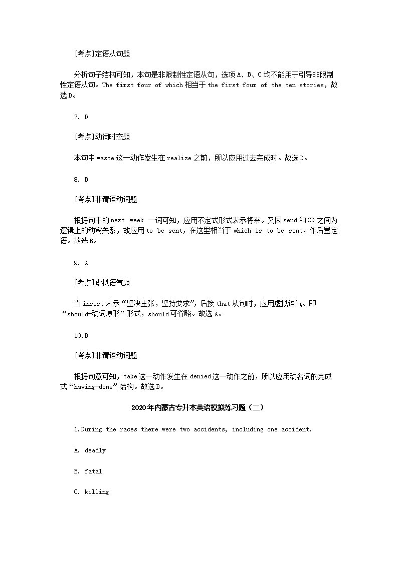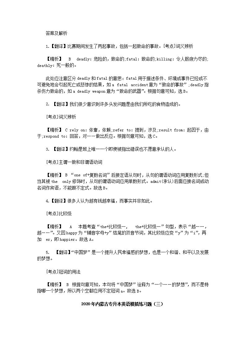 【文档名称】 2020年内蒙古专升本英语模拟练习题三套(Word版).doc