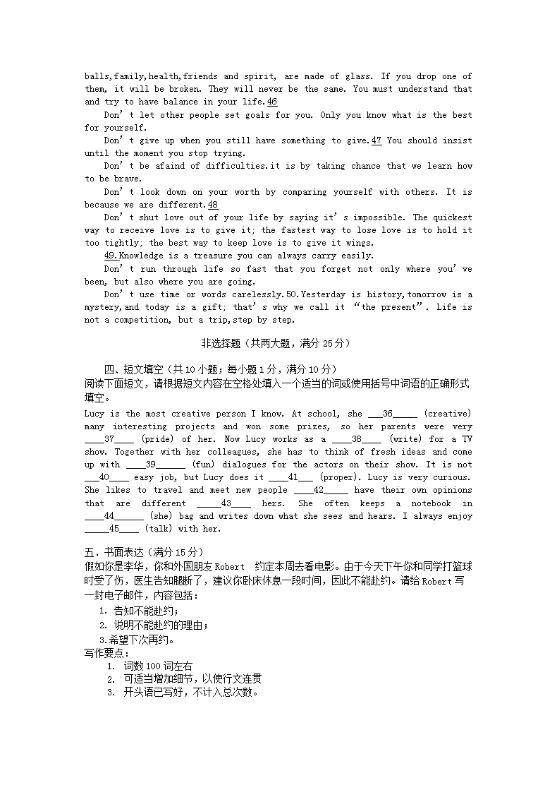 【文档名称】 2018年河南普通高中会考英语考试真题(Word版).doc