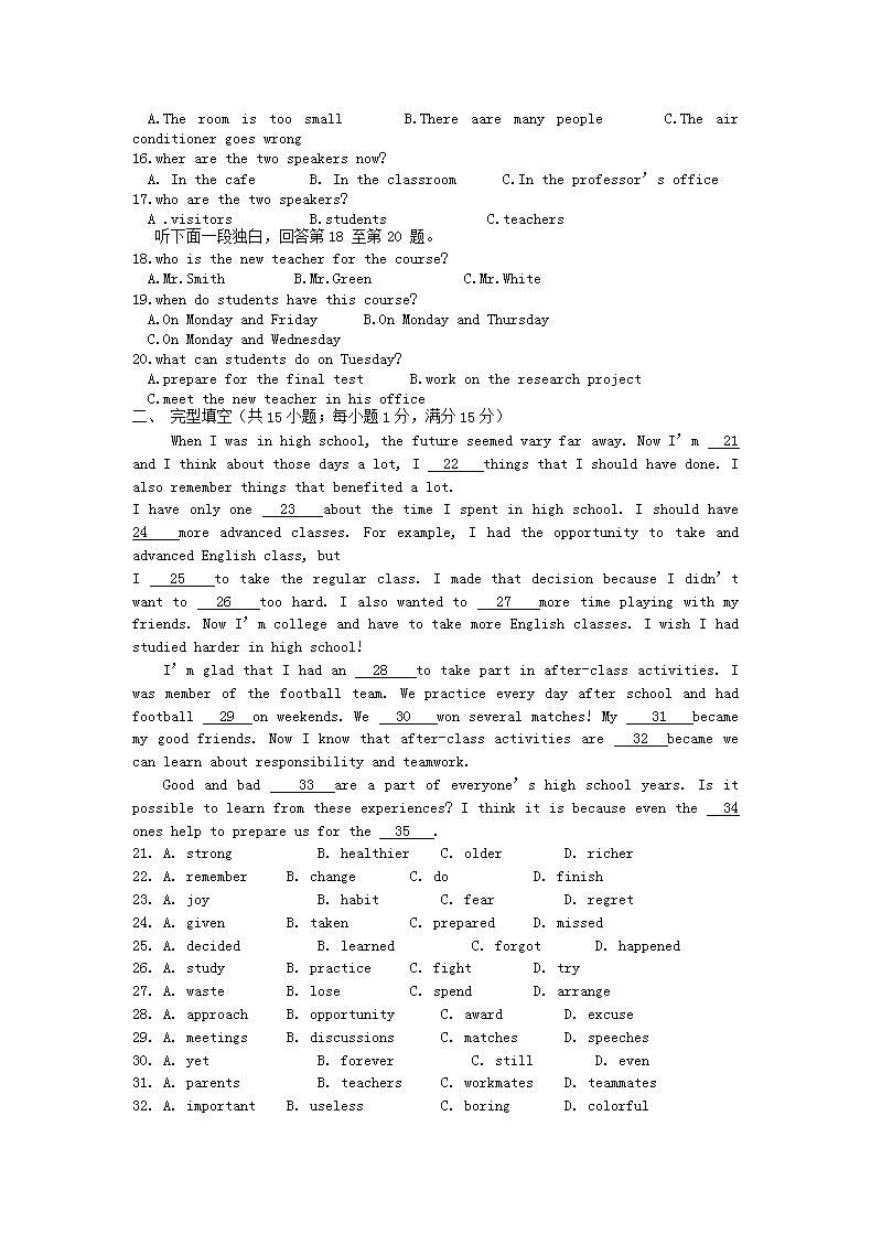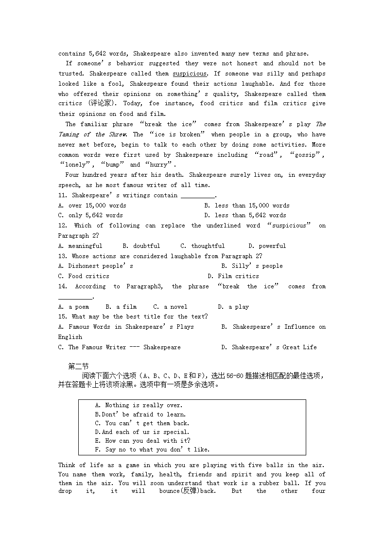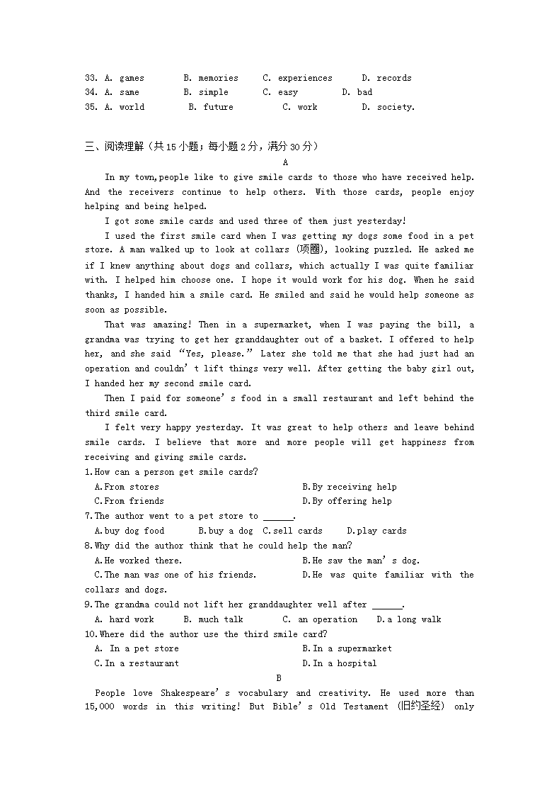 【文档预览】 无忧考网整理发布2018年河南普通高中会考英语考试真题(Word版),前五页预览如下:
