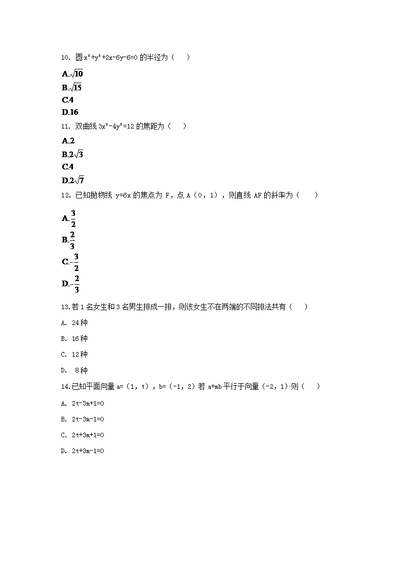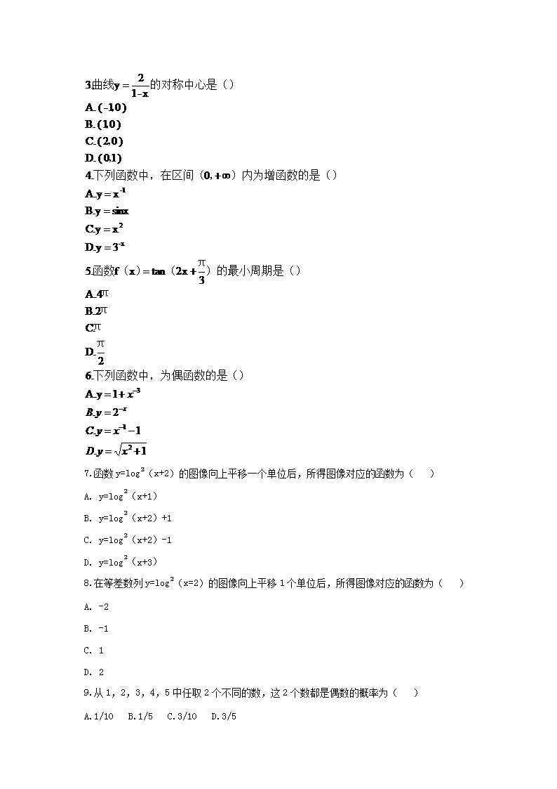 【文档名称】 2018年北京成人高考高起点数学(文)真题及答案(Word版).doc