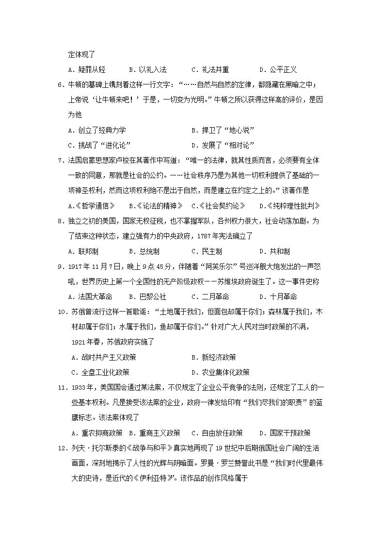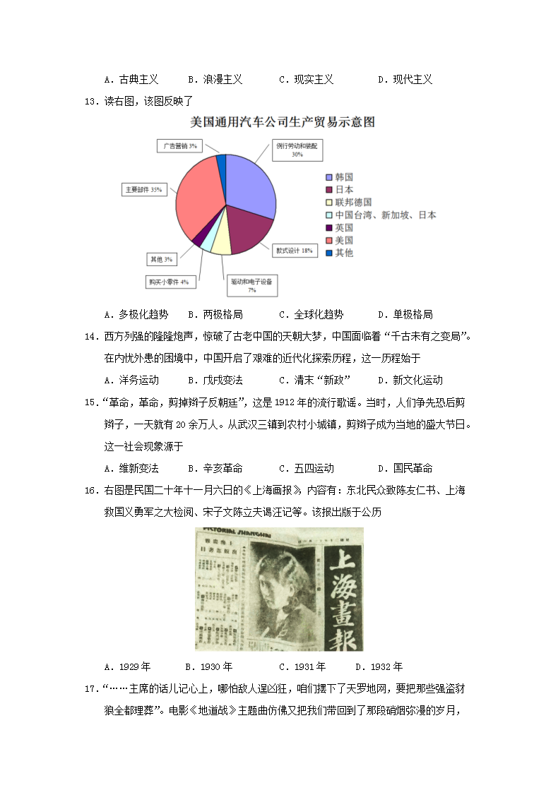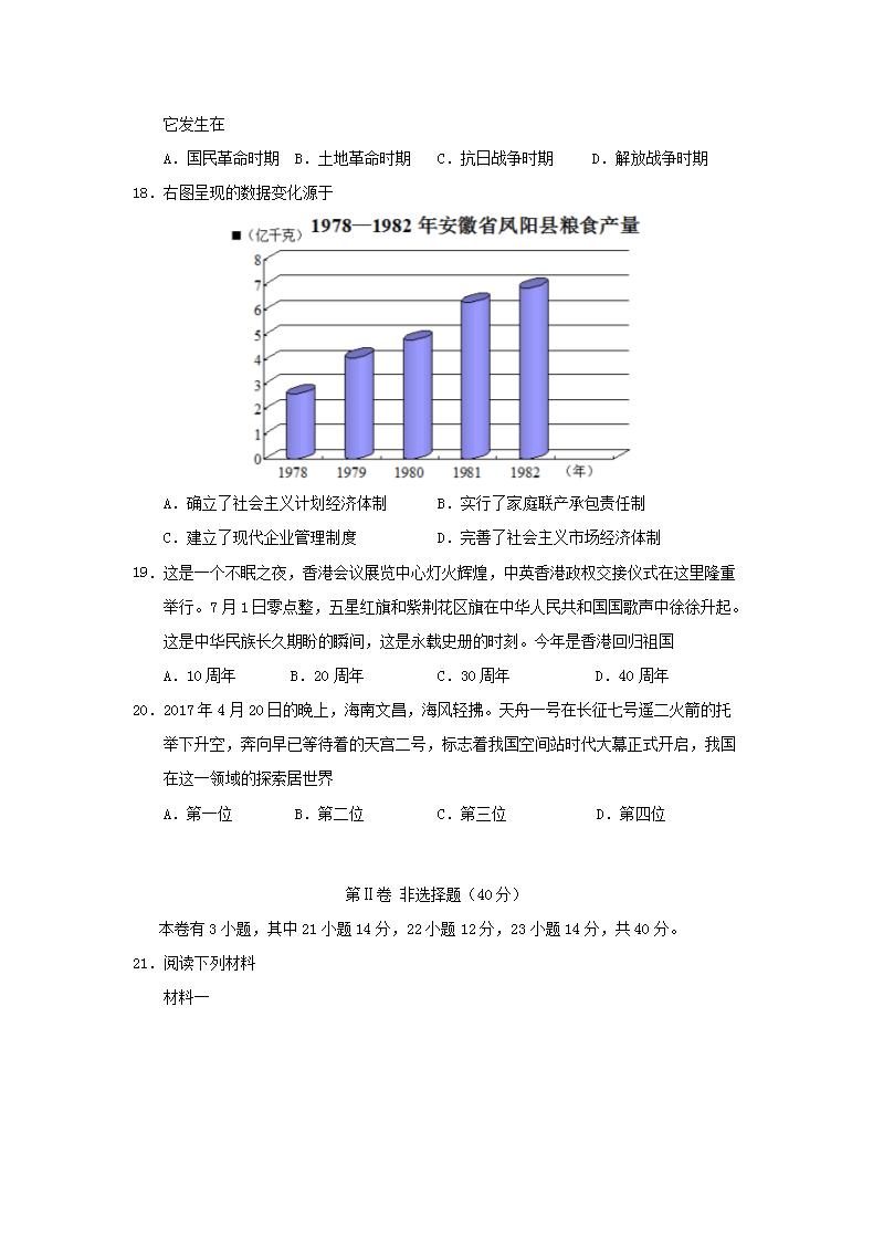 【文档名称】 2017年海南普通高中会考历史真题及答案(Word版).doc