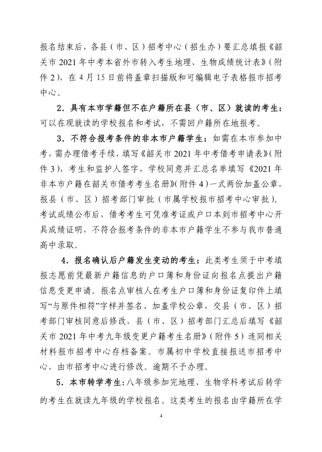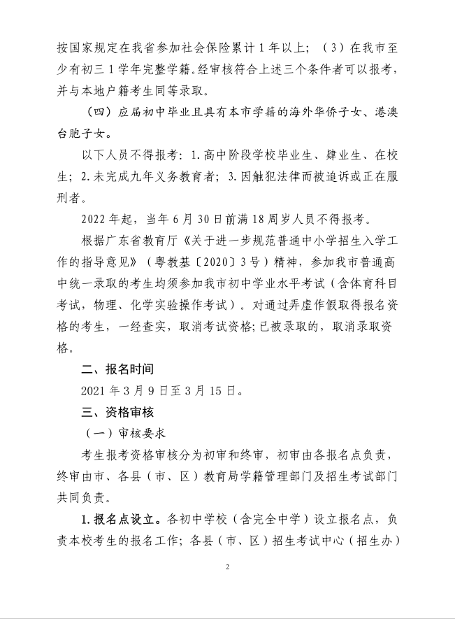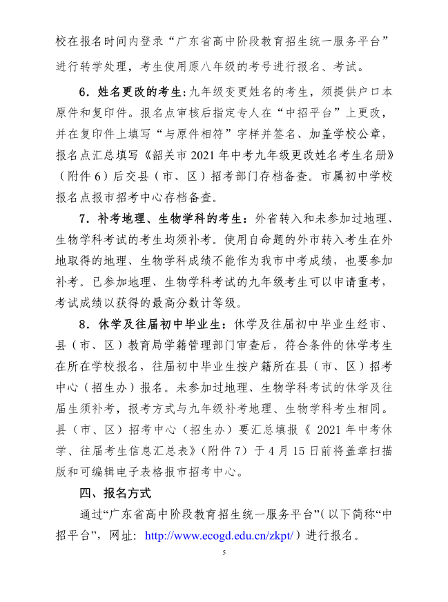 广东韶关2021初中学业水平考试报名工作的通知