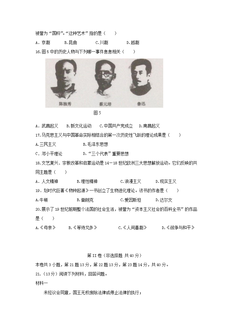 【文档名称】 2015年辽宁普通高中会考历史真题及答案(Word版).doc
