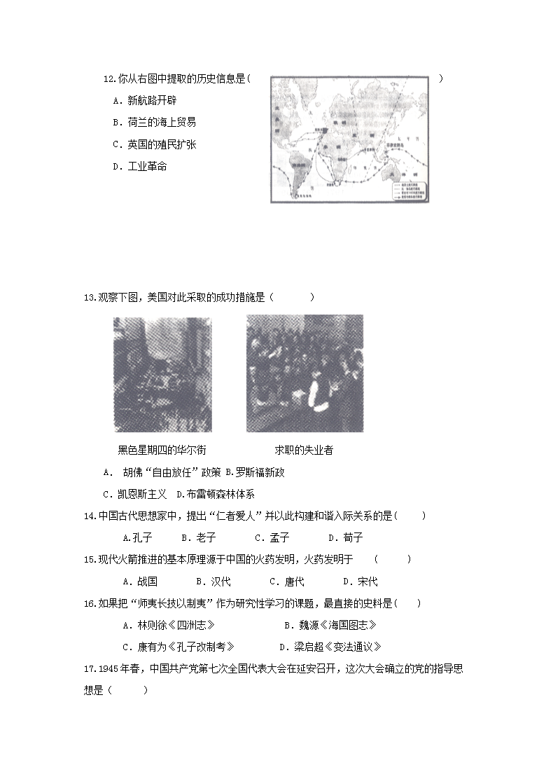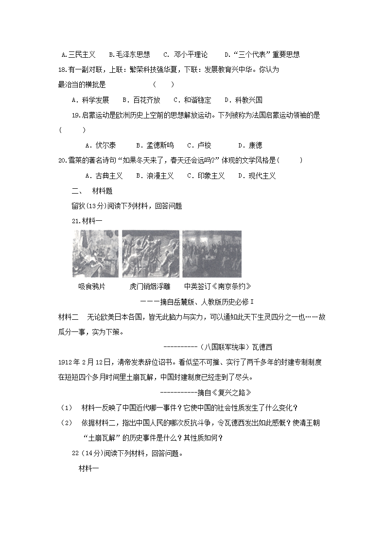 【文档名称】 2014年辽宁普通高中会考历史真题及答案(Word版).doc